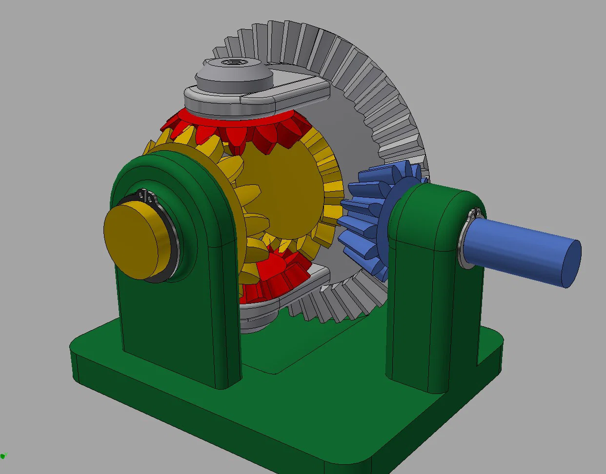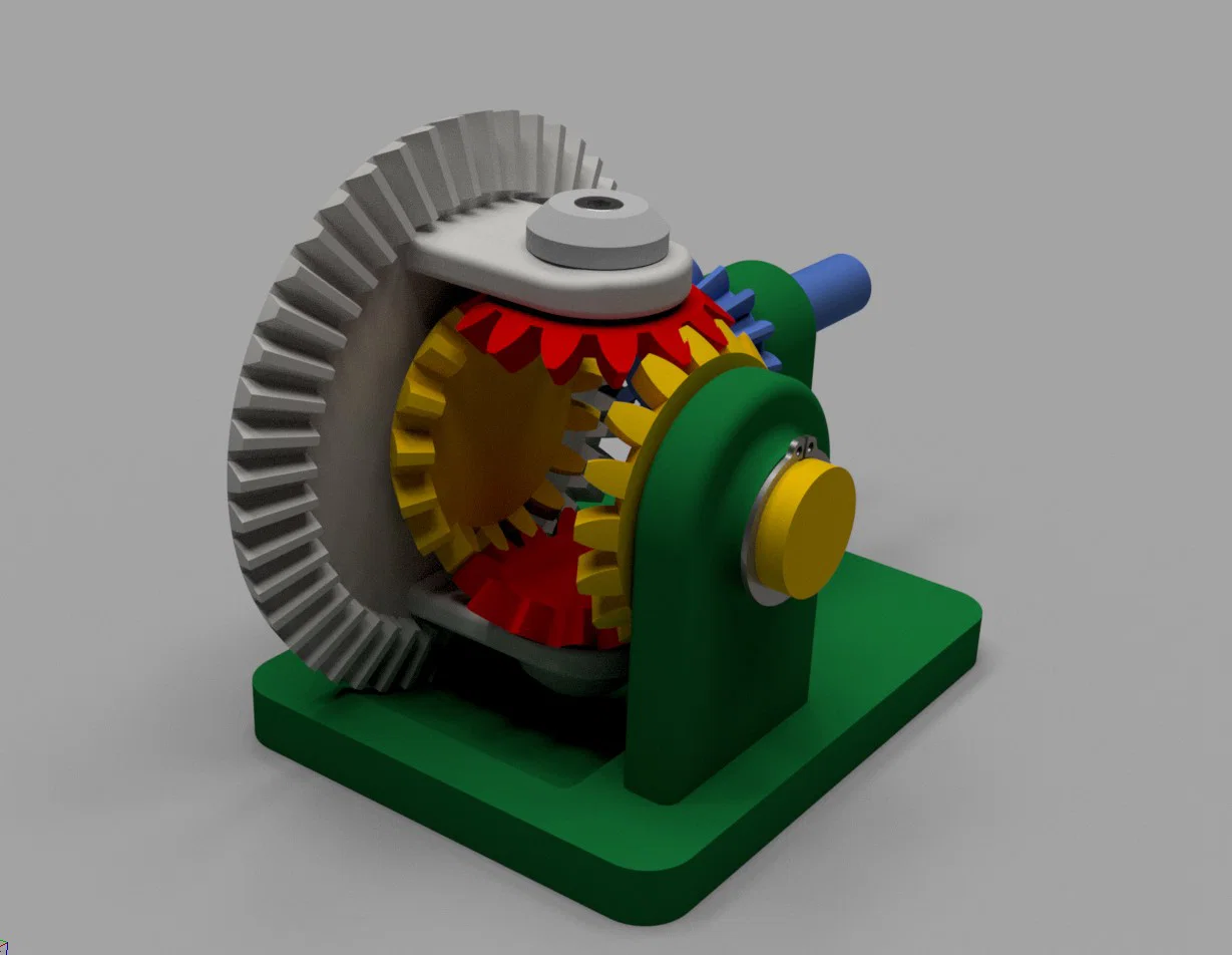 Mô hình bộ vi sai được thiết kế bằng Autodesk Inventor. Phiên bản này đã được cải tiến với các khe hở tối ưu hơn, bổ sung cơ chế khóa bằng ốc M5 và các vòng chặn trục tiêu chuẩn, rất thích hợp cho việc học tập và nghiên cứu kỹ thuật.