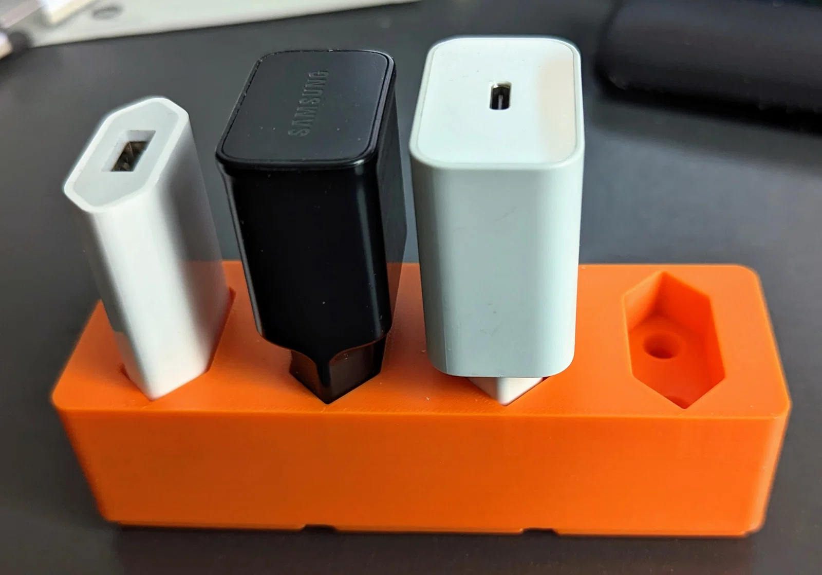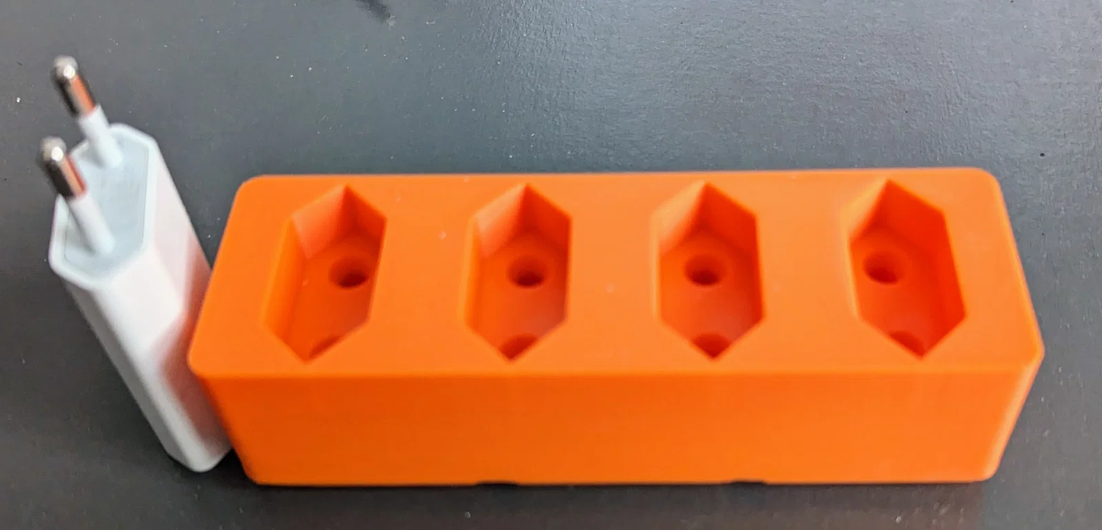 Bạn có thể cất giữ các củ sạc USB (sử dụng chân cắm Euro-plug) trong một khay Gridfinity.