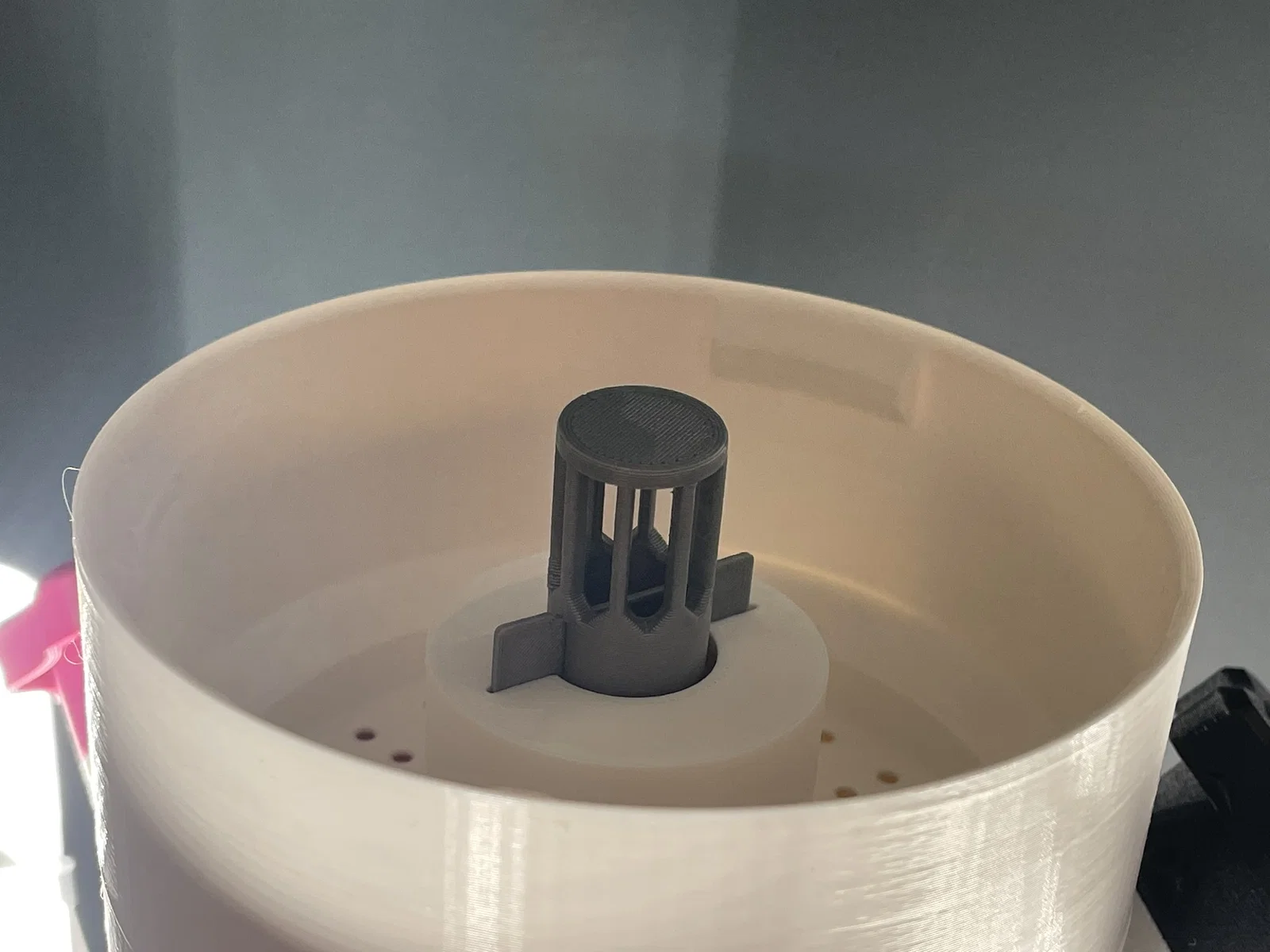 Được in bằng vật liệu PETG, phần chốt và vòi không cần support.