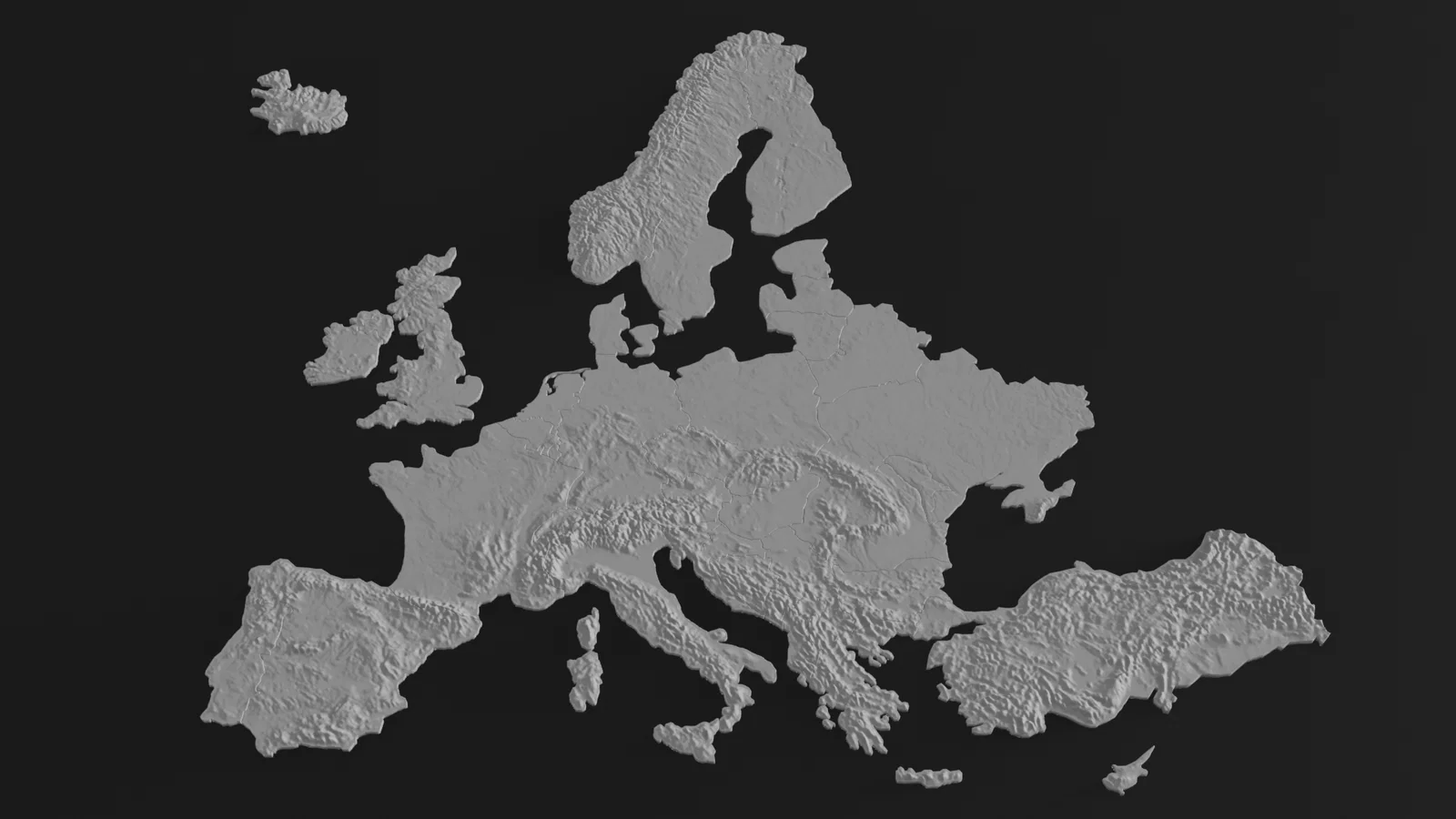 Mô hình địa hình 3D (bản đồ địa hình) châu Âu