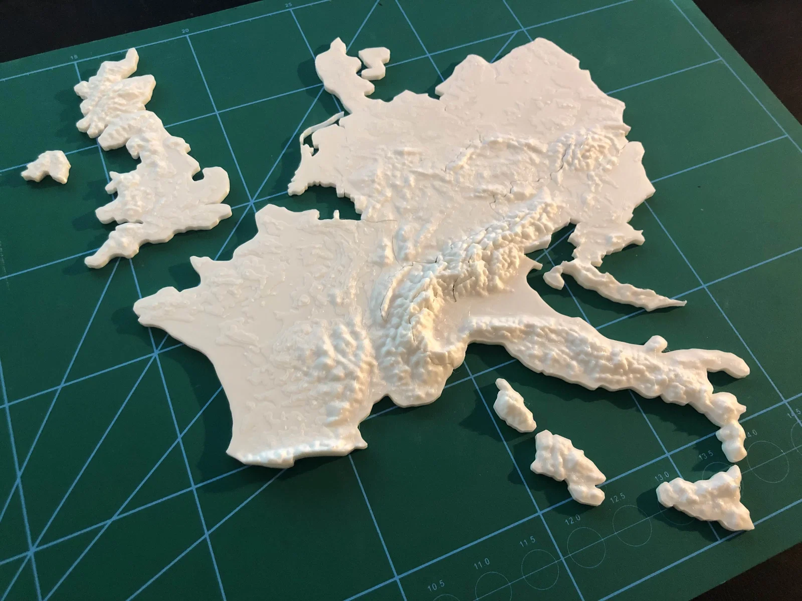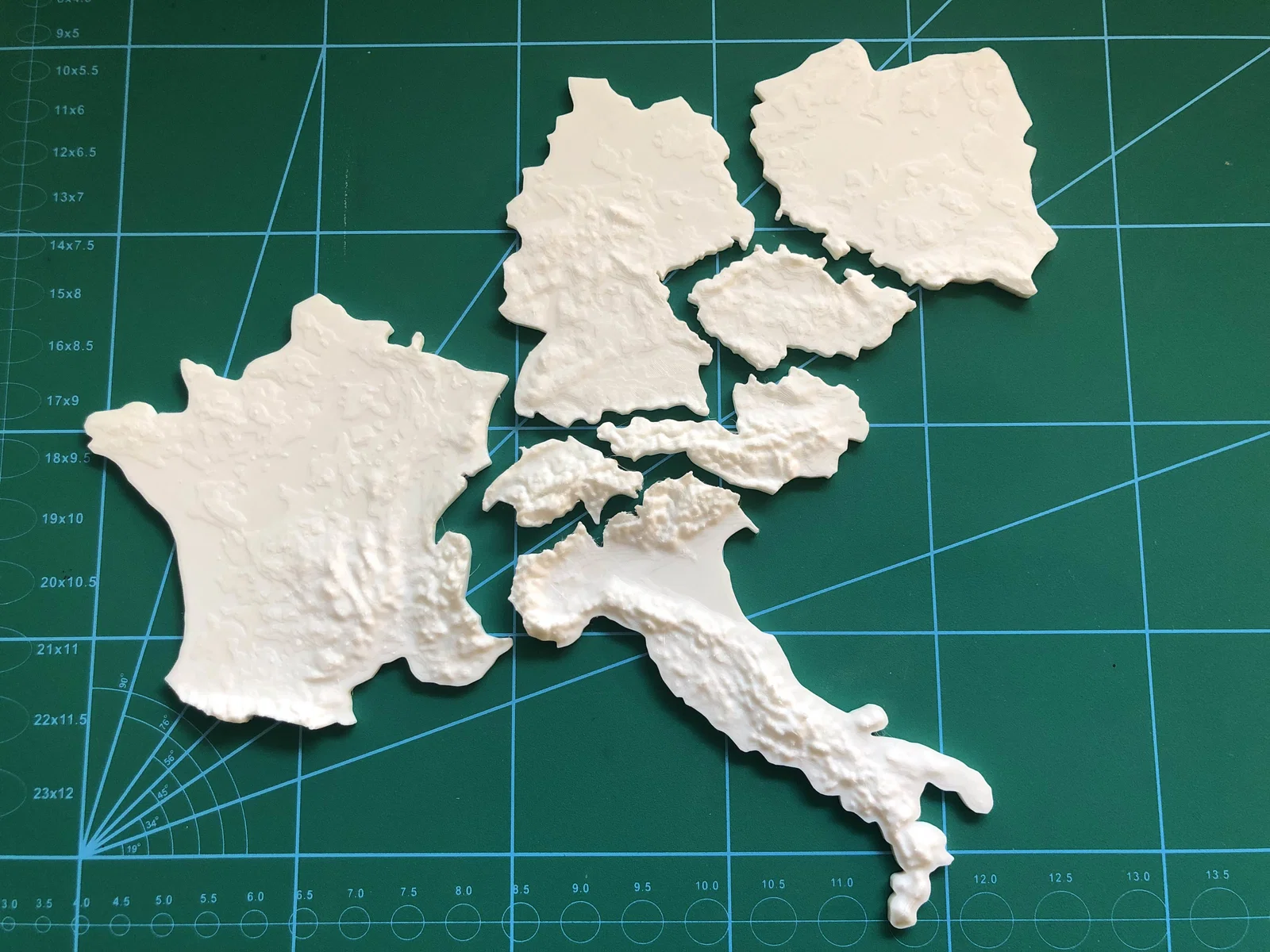 Bộ sưu tập mô hình 3D địa hình chi tiết của hầu hết các quốc gia châu Âu. Các tệp tin được tối ưu hóa cho in 3D với hệ số phóng đại núi 10 lần, giúp bạn dễ dàng in ra các bản đồ địa lý sắc nét và trực quan.