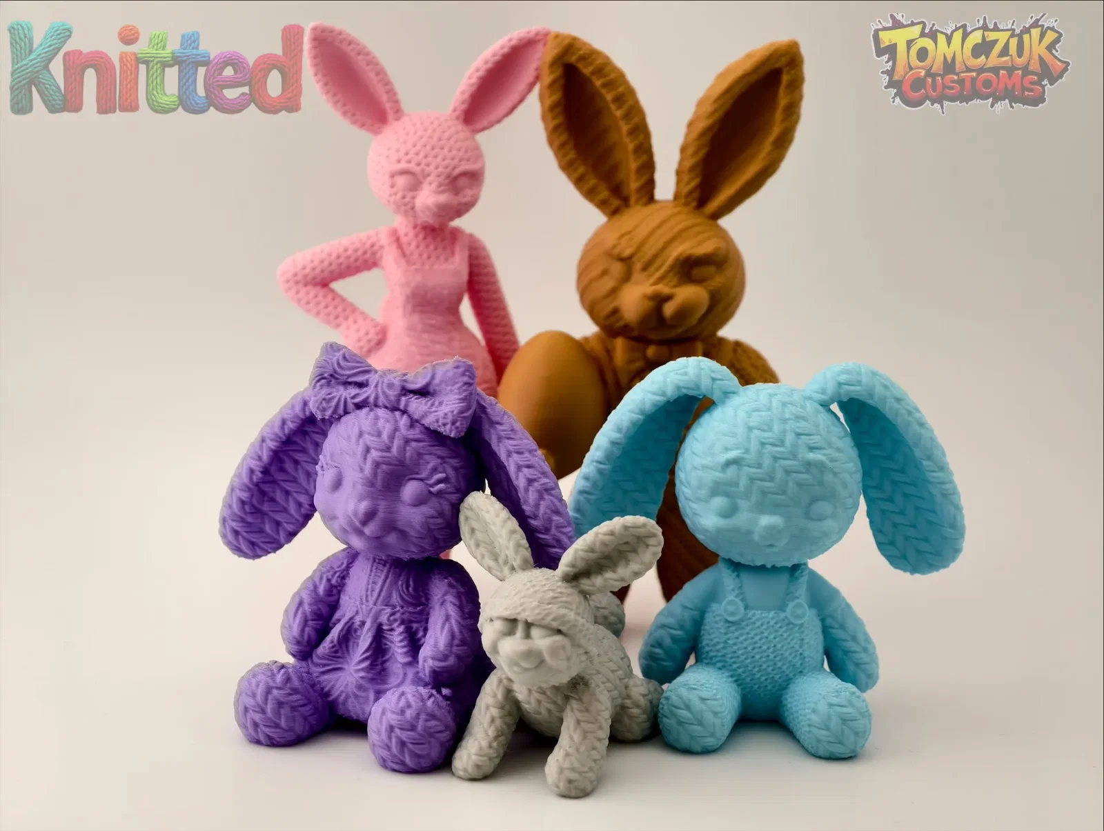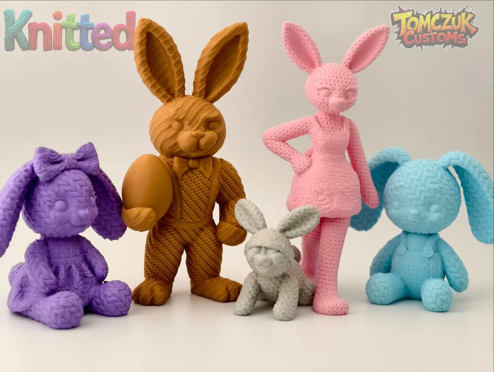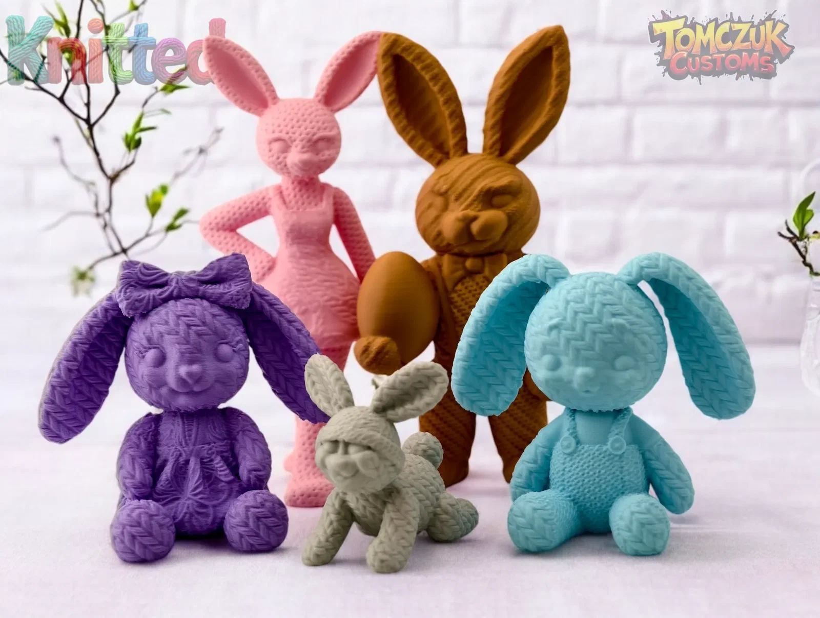 Chào mừng lễ Phục Sinh với bộ mô hình 5 chú thỏ đan len siêu cưng gồm gia đình đầy đủ. Các bé thỏ có vân bề mặt giả len mềm mại, in cực dễ và là vật phẩm trang trí hoàn hảo cho ngôi nhà của bạn vào dịp xuân về.