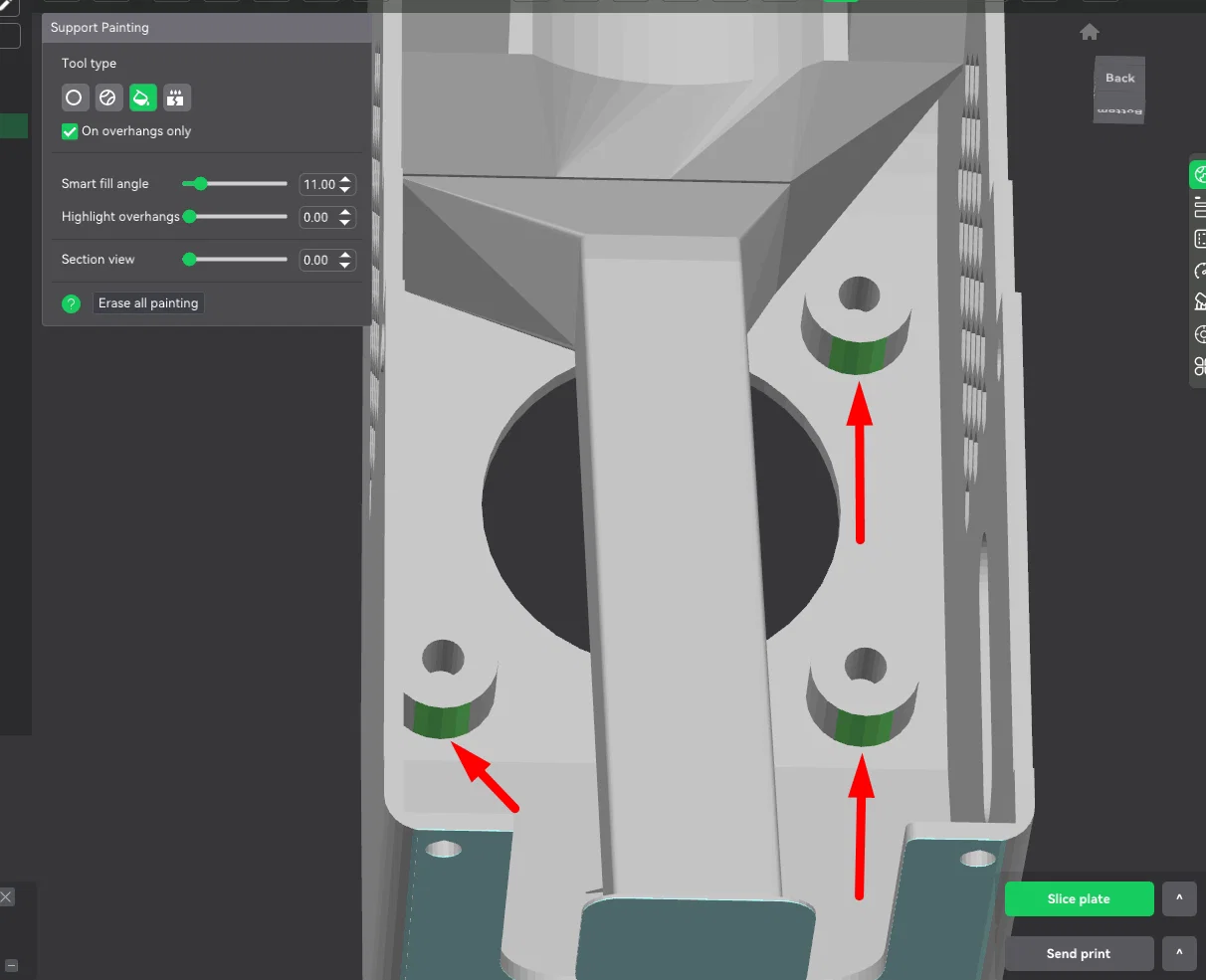 Khi in mẫu này: Hãy tách model thành các phần trong phần mềm slicer (nó bao gồm phần nắp chính và một phần support tùy chỉnh).