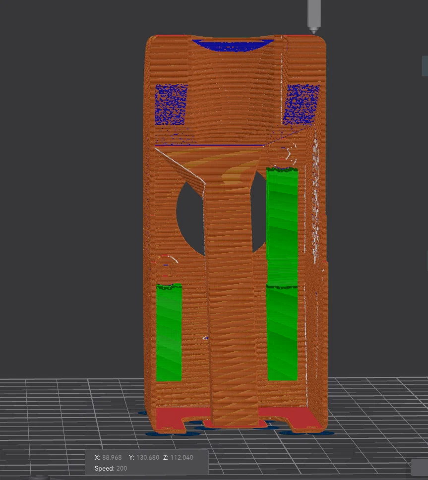 Mình đã in mẫu này bằng PETG-CF thông thường. Bạn cũng có thể dùng ABS hoặc ASA, nhưng mình không khuyến khích dùng PLA nếu bạn đã lắp hộp che (enclosure) cho máy in.