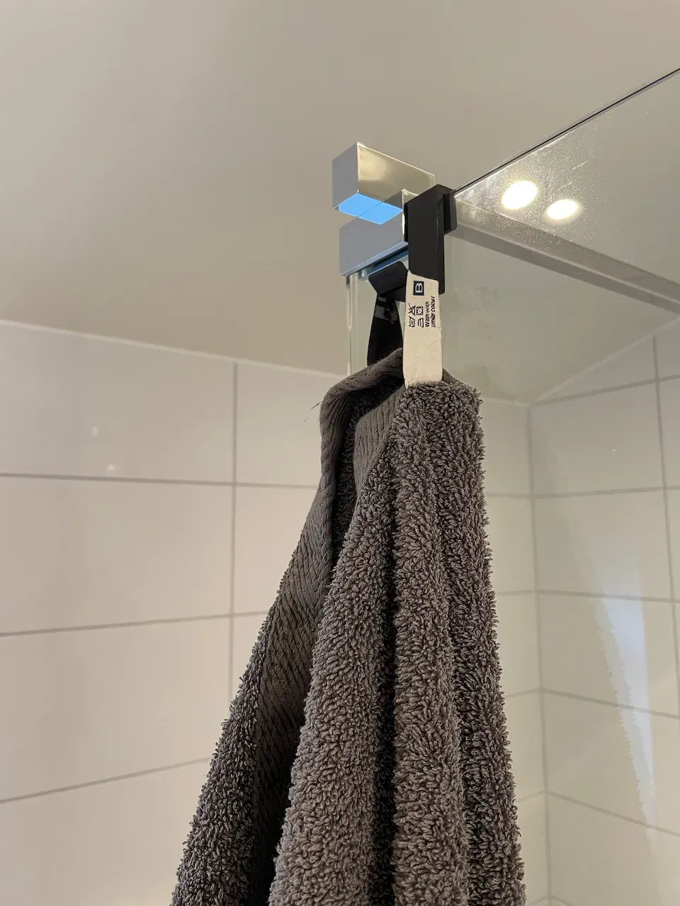 Một móc treo chắc chắn và vừa vặn cho tường vòi sen có độ dày 8mm. Tôi đã in cái này bằng PETG và thêm đủ lớp để làm cho nó chắc chắn. Sử dụng cho khăn tắm, dụng cụ lau kính và bất cứ thứ gì khác. Túi đồ vệ sinh du lịch, có thể?