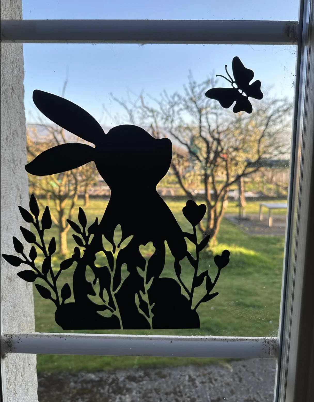Mẫu trang trí cửa kính hình thỏ và bướm cho lễ Phục sinh