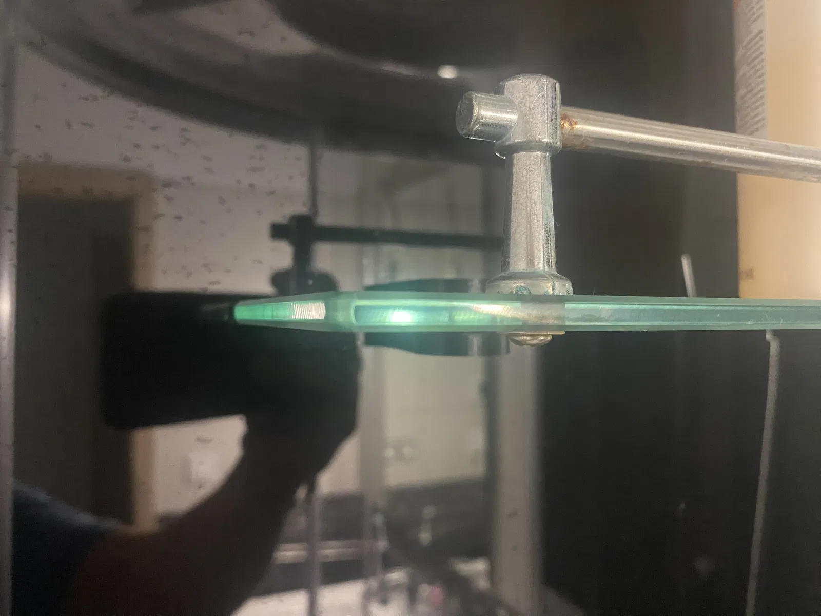 Tôi đã thiết kế giá đỡ này cho một kệ thủy tinh nhỏ hơn vì cái ban đầu đã bị hỏng.