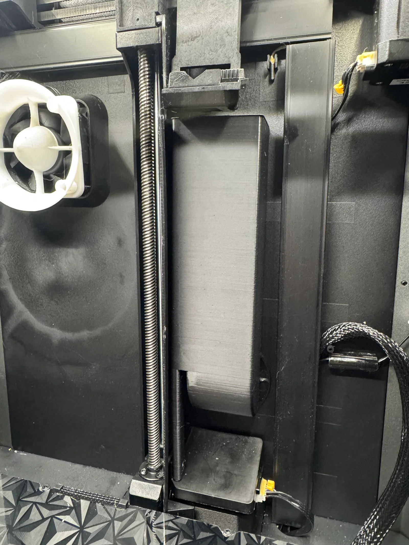 - Cắt bỏ phần nhựa thừa ở phía sau vị trí lắp giá đỡ cuộn nhựa trên máy K1 (mình dùng kìm để cắt phần lớn, sau đó dùng máy dremel cầm tay để mài lại cho phẳng).