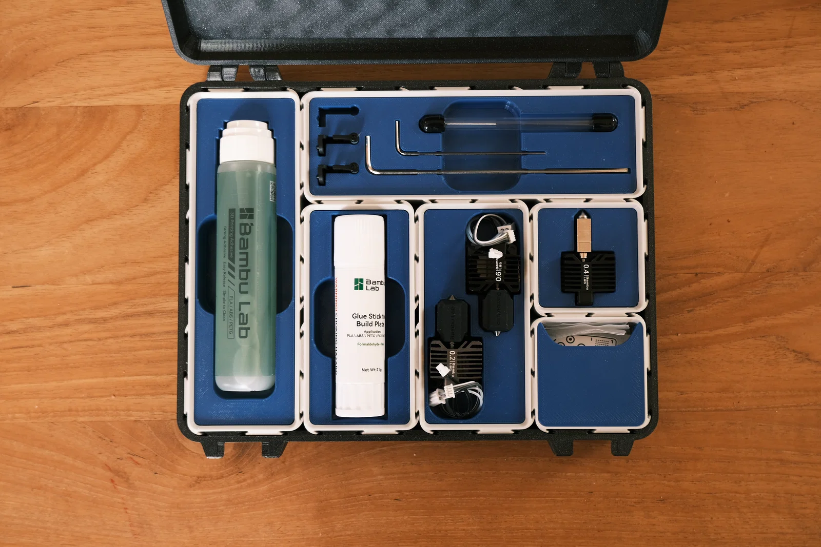 Bạn đang tìm cách sắp xếp gọn gàng phụ kiện cho máy in Bambulab? Hãy thử ngay mẫu BinLink này. Thiết kế hộp đi kèm với các khay nhỏ tiện dụng, giúp bạn lưu trữ đầu in, keo và phụ kiện in 3D một cách khoa học và đẹp mắt.