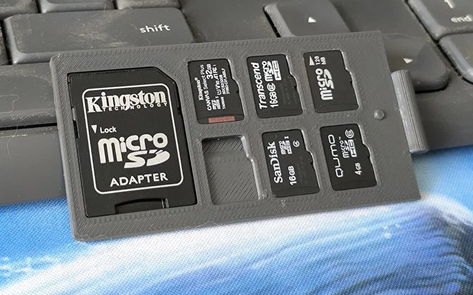 Mẫu hộp đựng thẻ MicroSD nhỏ gọn, thiết kế cực kỳ chắc chắn giúp giữ thẻ không bị rơi. Lưu ý nhỏ là lẫy khóa hơi chặt, bạn có thể cân nhắc tùy chỉnh lại kích thước để đóng mở dễ dàng hơn khi in bằng nhựa PETG.