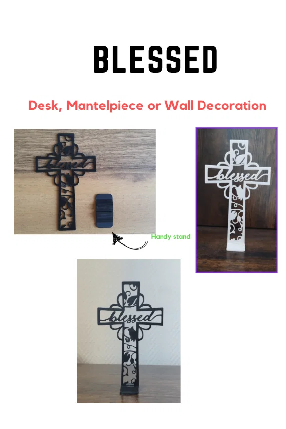 Mang vẻ đẹp tinh tế và ý nghĩa đức tin vào ngôi nhà của bạn với mẫu Thánh giá "Blessed" độc đáo này. Thiết kế đi kèm chân đế tiện lợi, cực kỳ dễ in, phù hợp để làm vật trang trí bàn làm việc hoặc món quà tặng ý nghĩa cho người thân.