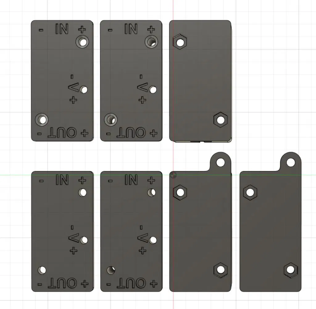 Mẫu này được mình thiết kế riêng cho máy i3 MK3 S để chứa bộ hạ áp DC-DC, giúp mình tận dụng đèn LED 12v thay vì dùng loại 24v cho thanh đèn "Single LED Light Bar prusa i3 MK2/MK3" của SethBon (http://www.prusaprinters.org/prints/4566-single-led-light-bar-prusa-i3-mk2mk3). Phần nắp trên có khắc nhãn cho đầu IN - OUT và vị trí điều chỉnh điện áp đầu ra. Thiết kế này sử dụng ốc vít và đai ốc M3. Khi lắp vào khung máy MK3, anh em nhớ chú ý để ốc vít không bị lồi ra mặt sau của khung. Đối với tùy chọn gắn ngắn, ốc nên dài khoảng 5-8mm. Còn với tùy chọn gắn dài, anh em nên chọn ốc dài từ 25-28mm nhé. Mình đã cố gắng tối ưu kích thước sao cho nhỏ gọn nhất có thể. Mình không chắc máy MK2 có lỗ bắt vít trên khung giống bản thiết kế này không, nên anh em nào dùng MK2 thì kiểm tra kỹ lại trước khi in nhé. Thời gian in khoảng 40-65 phút tùy vào hai bộ phận anh em chọn in.