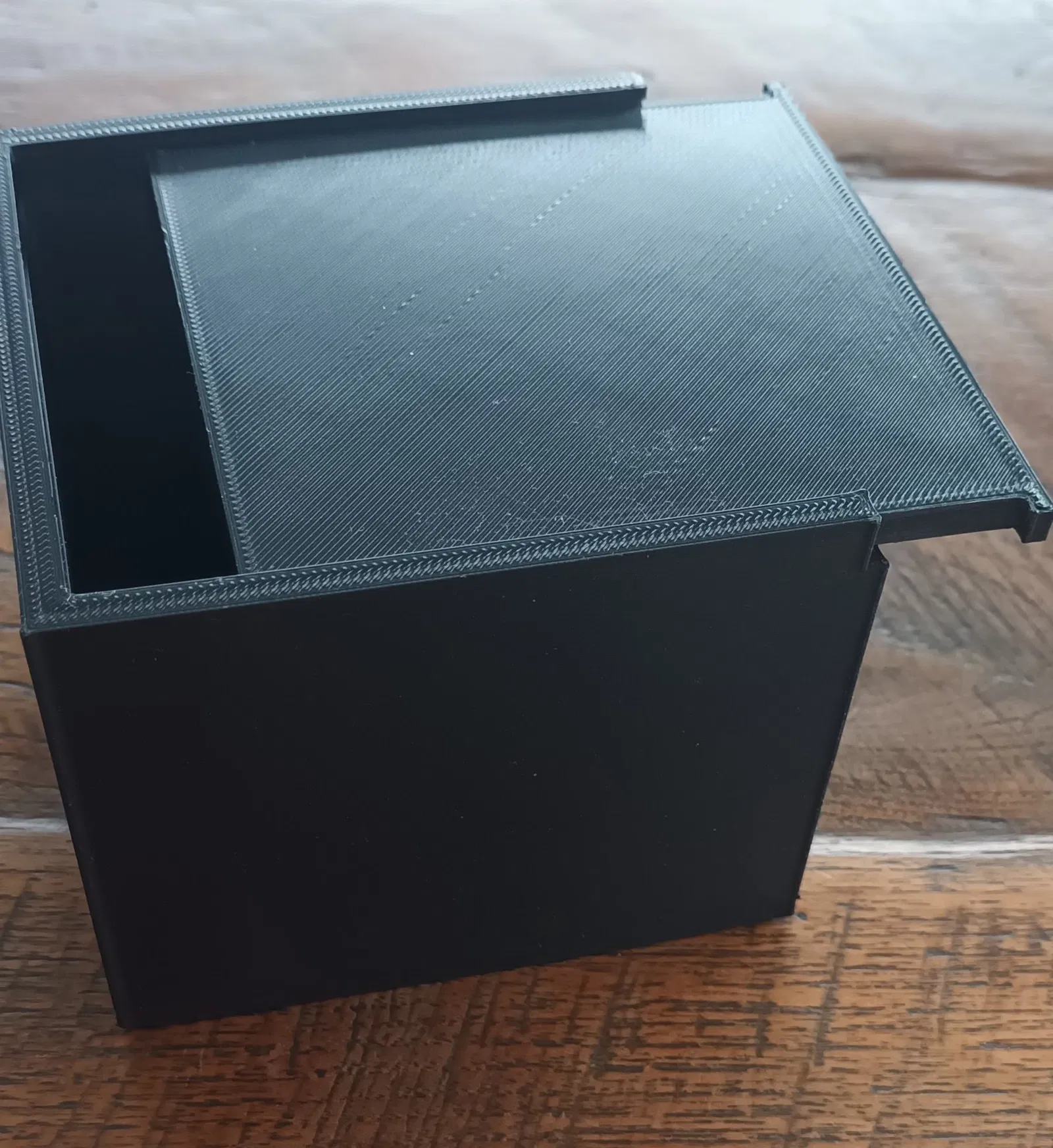 - Vật liệu in: PLA là lựa chọn tối ưu vì dễ in, độ co ngót thấp, giúp nắp hộp khớp với thân hộp dễ dàng hơn.
