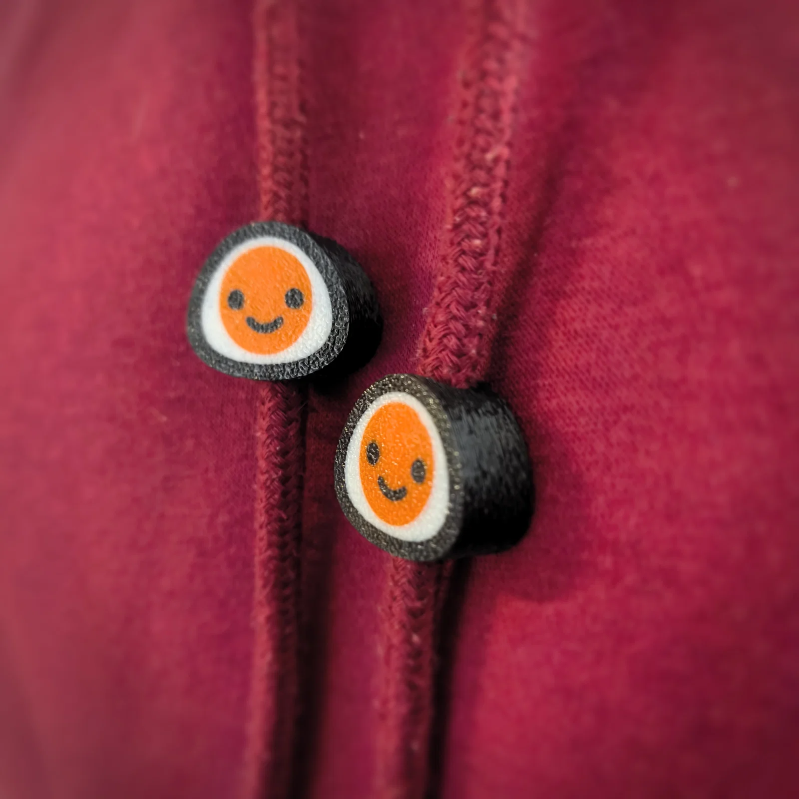 Phụ kiện xỏ dây áo hoodie đa chất liệu (Multi-Material) có hình dáng giống như một cuộn sushi hosomaki cá hồi cực xinh!