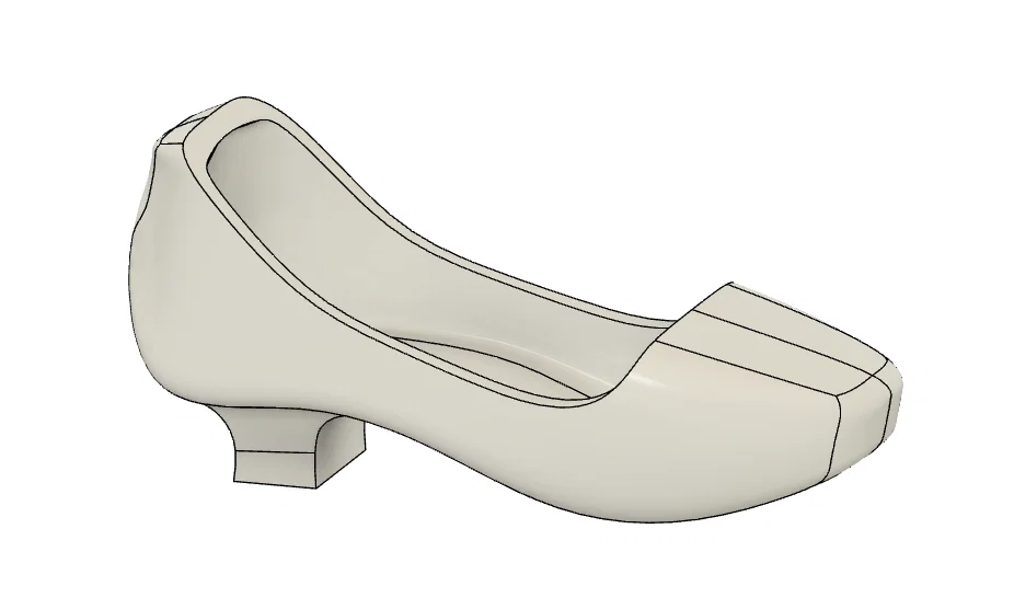 Mình sử dụng tính năng 'Form' trong Fusion để vẽ một nửa chiếc giày, sau đó phản chiếu (mirror) lại để tạo ra nửa còn lại. Hai chiếc giày hoàn toàn giống hệt nhau (không phân biệt chân trái hay chân phải).