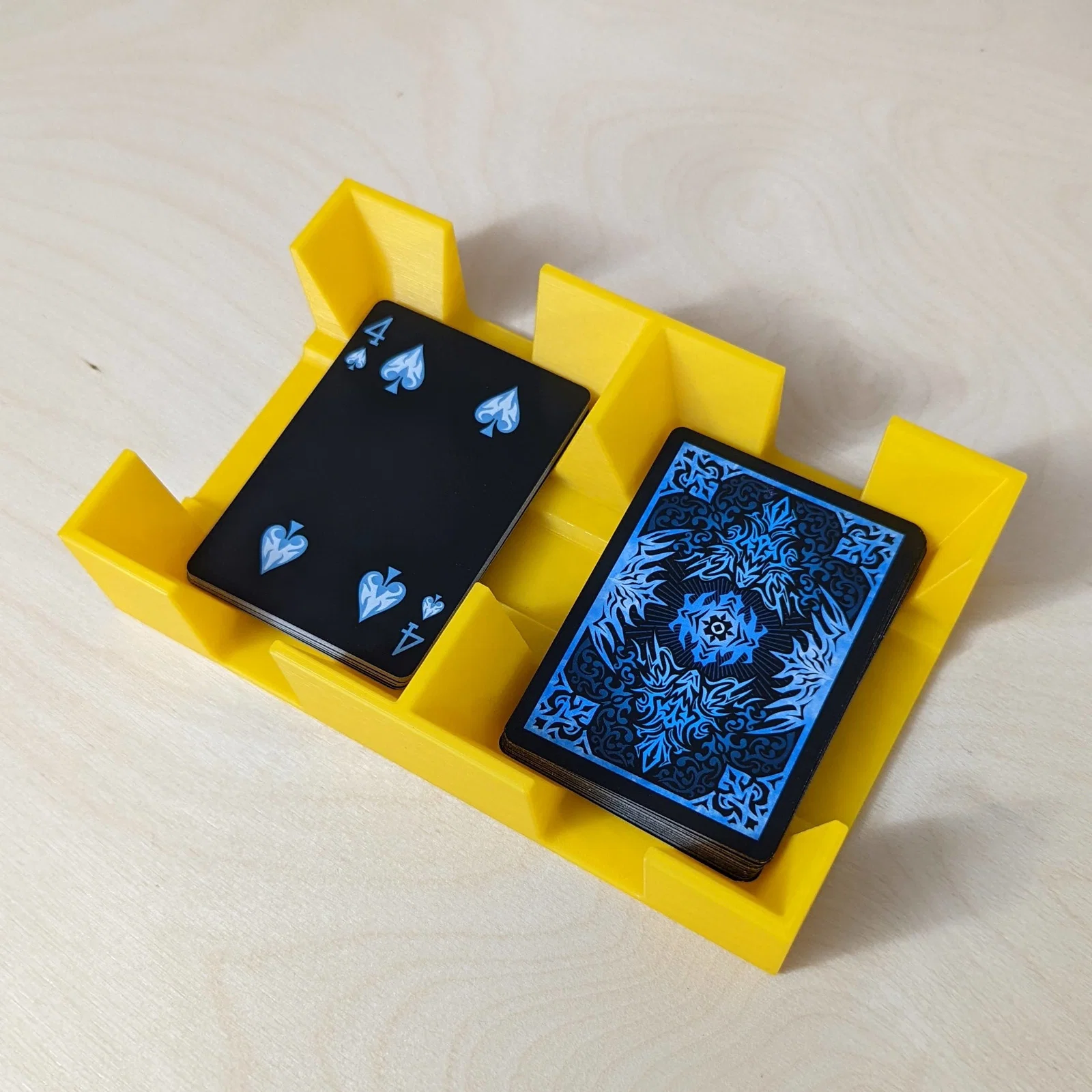 Khay đựng bài đôi được thiết kế theo phong cách cổ điển, tiện lợi cho việc rút bài và bỏ bài. Phù hợp cho 2 bộ bài, dễ dàng in ấn mà không cần support, mang lại trải nghiệm thú vị cho những buổi chơi bài cùng gia đình.