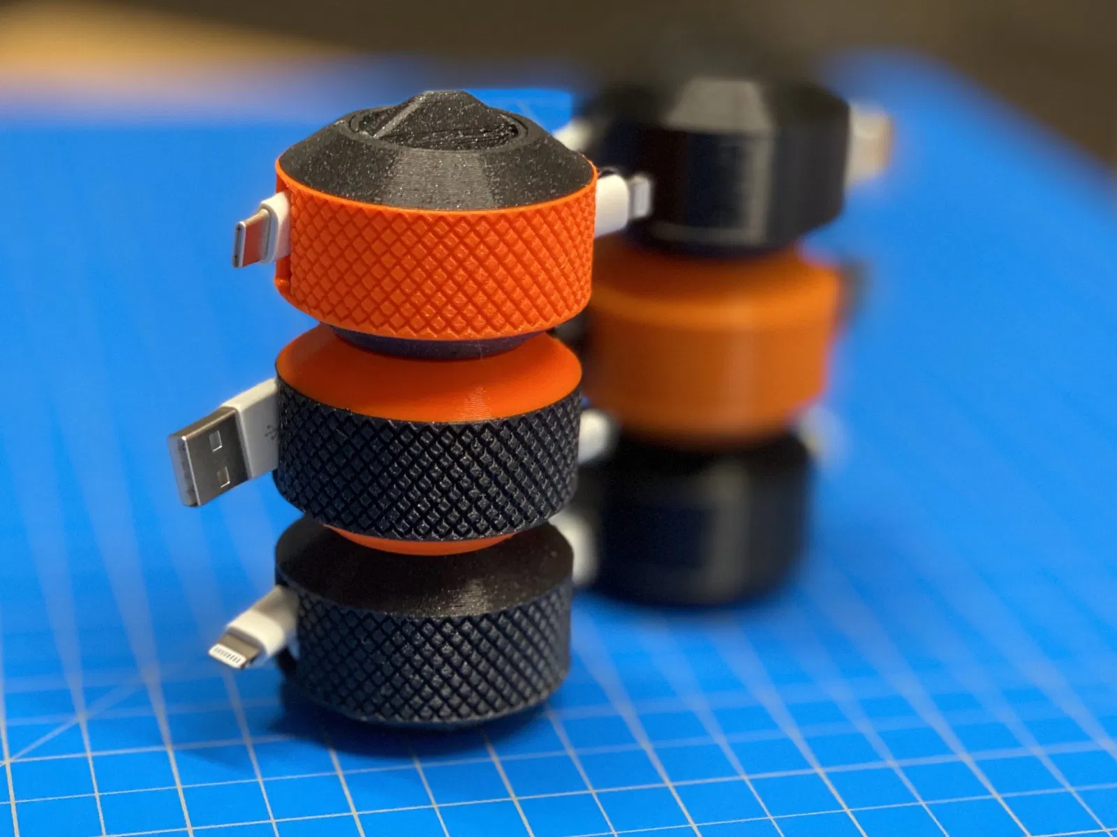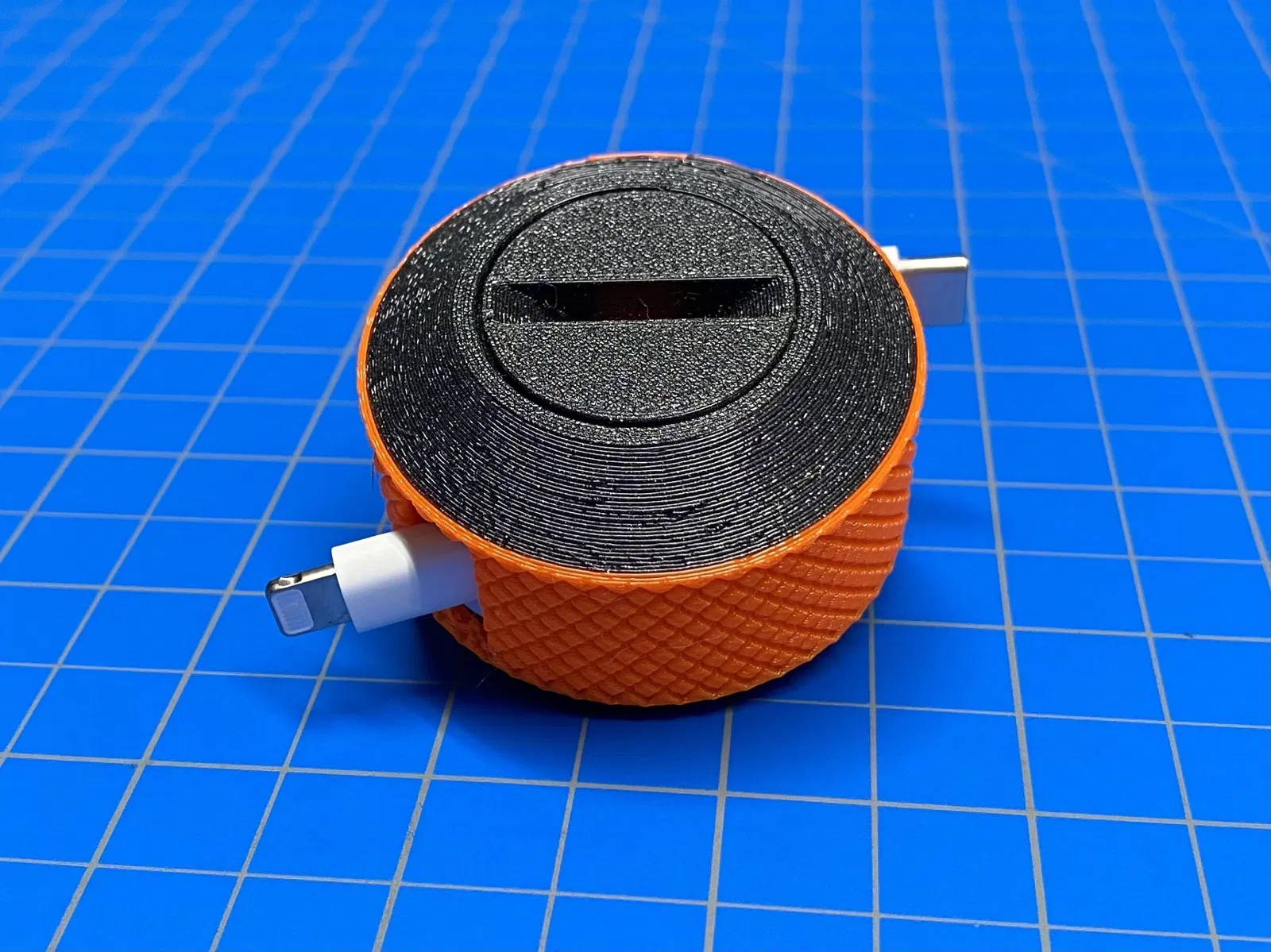 In dây cáp cuộn USB in sẵn. Cả hai bên mịn cũng như có rãnh. Cũng bao gồm mã cho in thay đổi màu. Lấy cảm hứng từ < ### Hướng dẫn in Khuyên dùng PETG In sẵn Không hỗ trợ Có in thay đổi màu Thay đổi màu tại: 0-6mm 6.2-26.2mm 26.4-37.96mm Mã gcode cho rãnh và rãnh thay đổi màu có thể được tìm thấy trong Tệp In của Người dùng