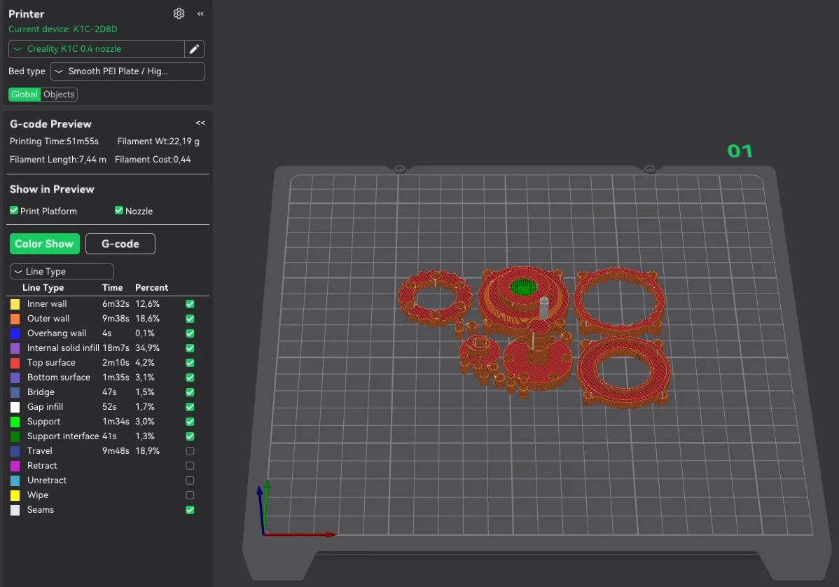 Thời gian in - 51 phút 55 giây (trên máy in Creality K1C)