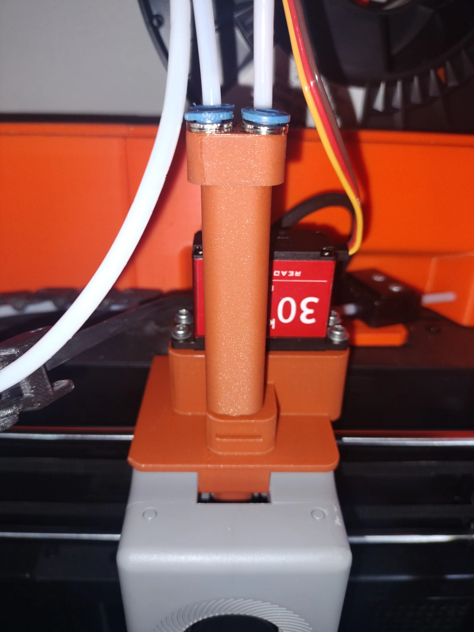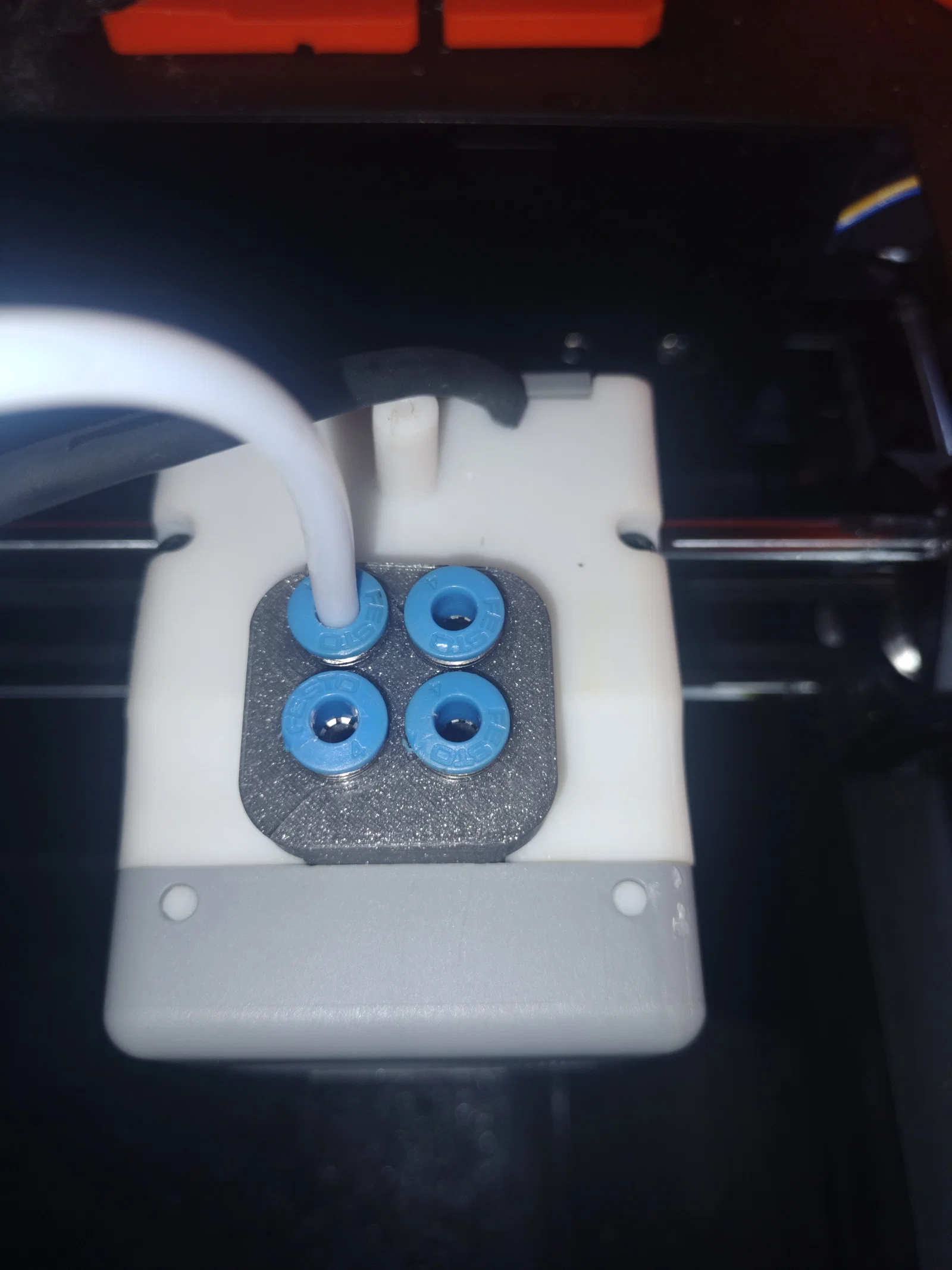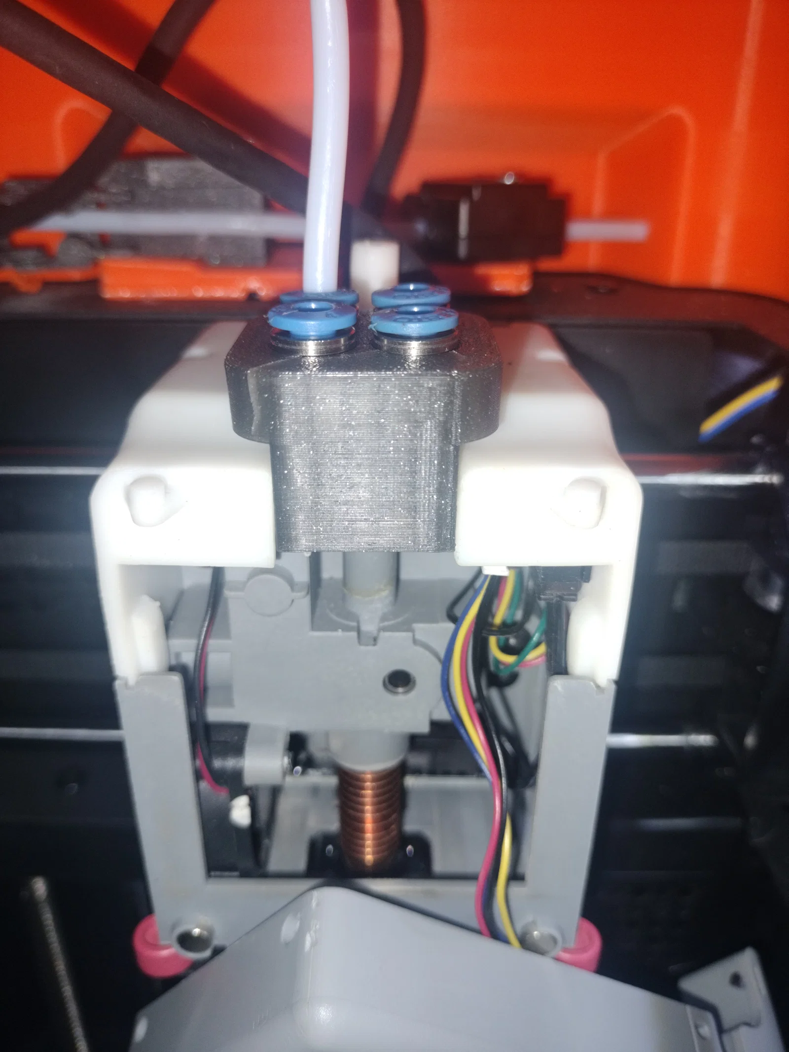 Đây là phiên bản bộ chuyển đổi 4 trong 1 cho sợi nhựa, dùng cho máy in 3D Flashforge Adventurer 5M hoặc 5M Pro khi kết hợp với hệ thống 3D Chameleon. Thiết kế giúp tối ưu hóa việc dẫn filament đa vật liệu một cách hiệu quả.