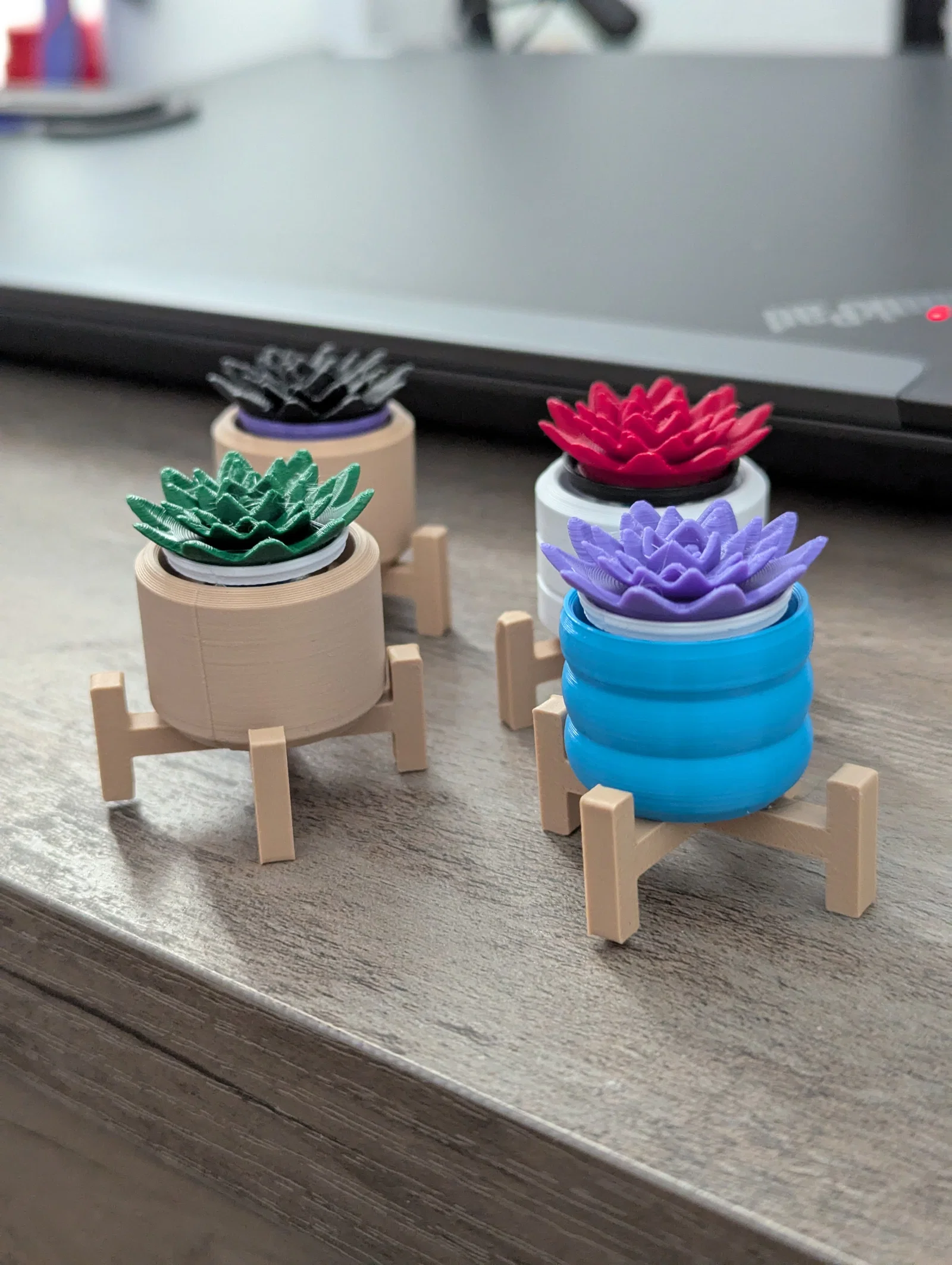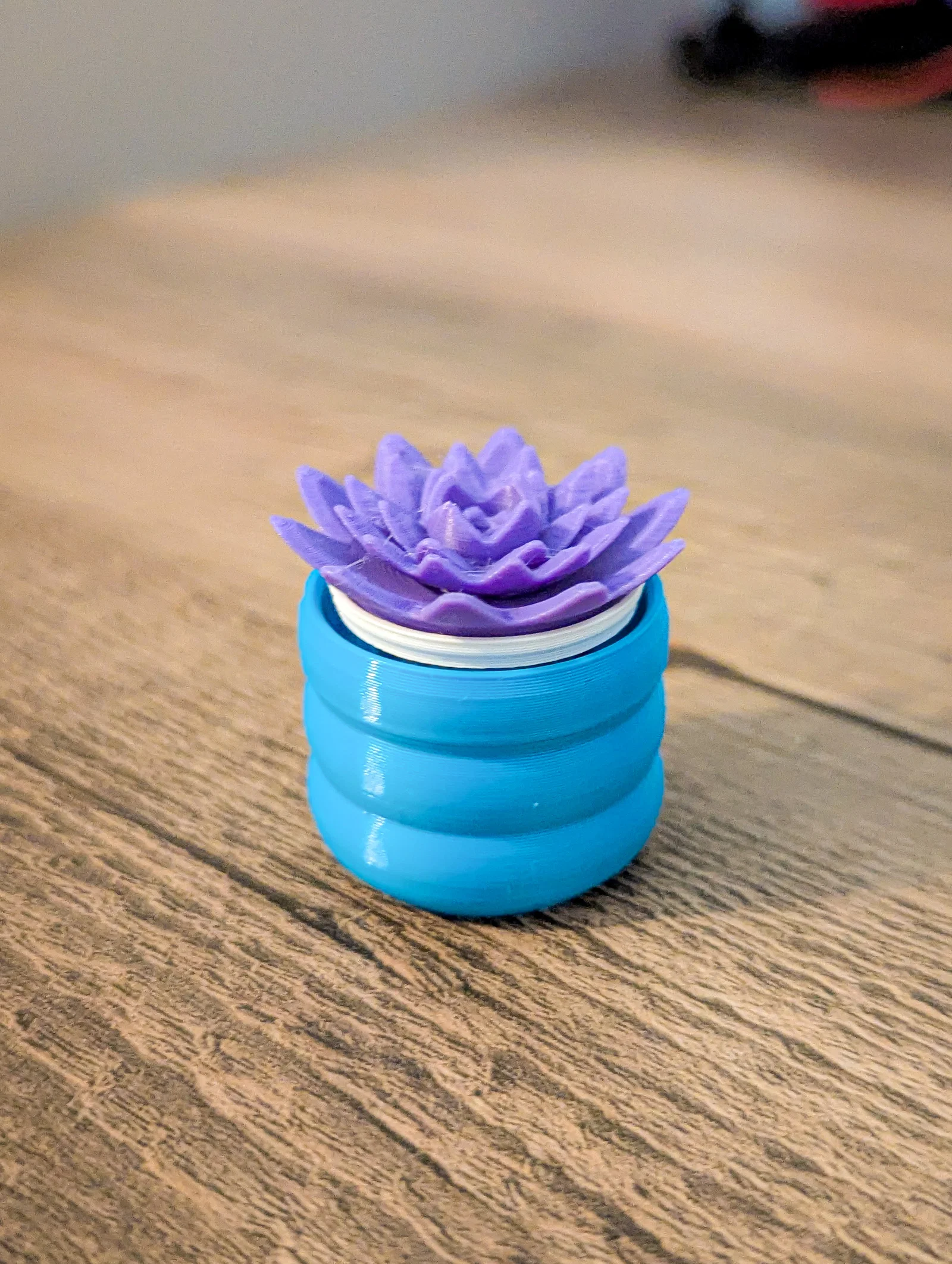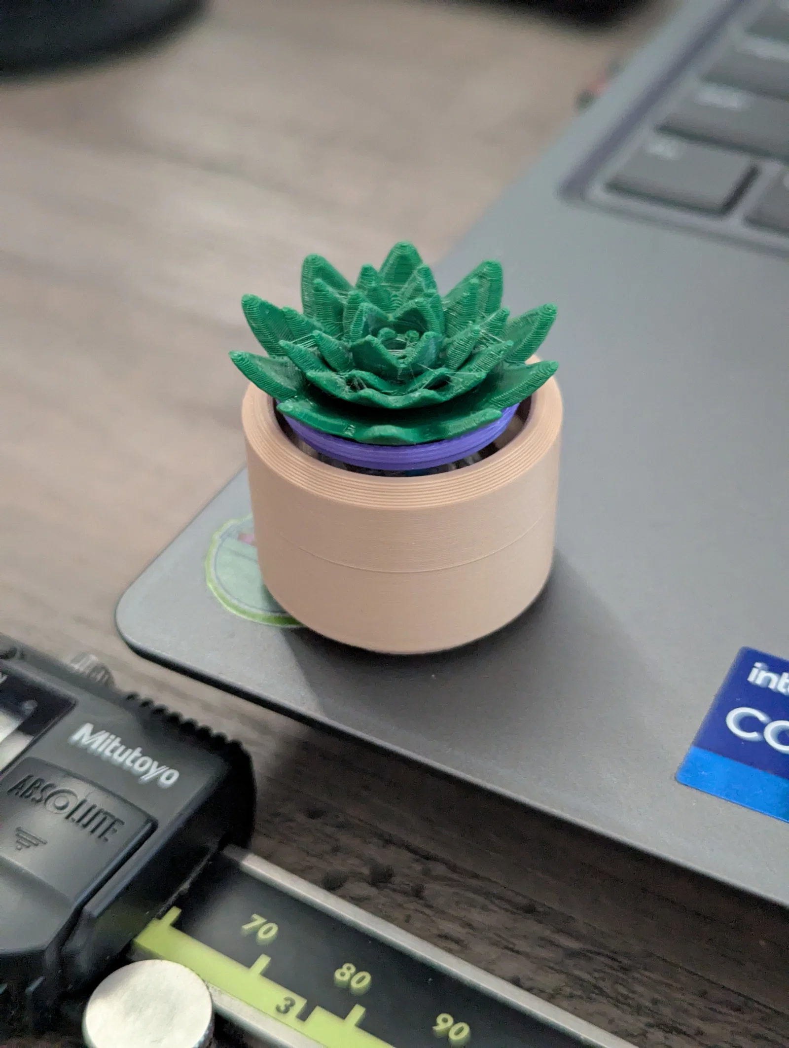 Một món đồ chơi fidget clicker cực vui và đã tay được thiết kế dưới hình dạng một chậu cây sen đá mini! Mình đã thiết kế riêng mẫu cây sen đá này trước đó, bạn có thể xem tại đây – https://makerworld.com/models/424662. Phần chậu cây có thể lắp ghép với một switch bàn phím cơ. Bạn chỉ cần gắn switch vào chậu, sau đó nhấn phần cây lên trên switch là xong. Nếu muốn chắc chắn hơn, bạn có thể dùng thêm keo 502 để cố định các bộ phận nhé. Link switch bàn phím: https://a.co/d/a5NPa4s. Nếu có thắc mắc gì, bạn cứ thoải mái nhắn cho mình. Chúc bạn in vui vẻ!