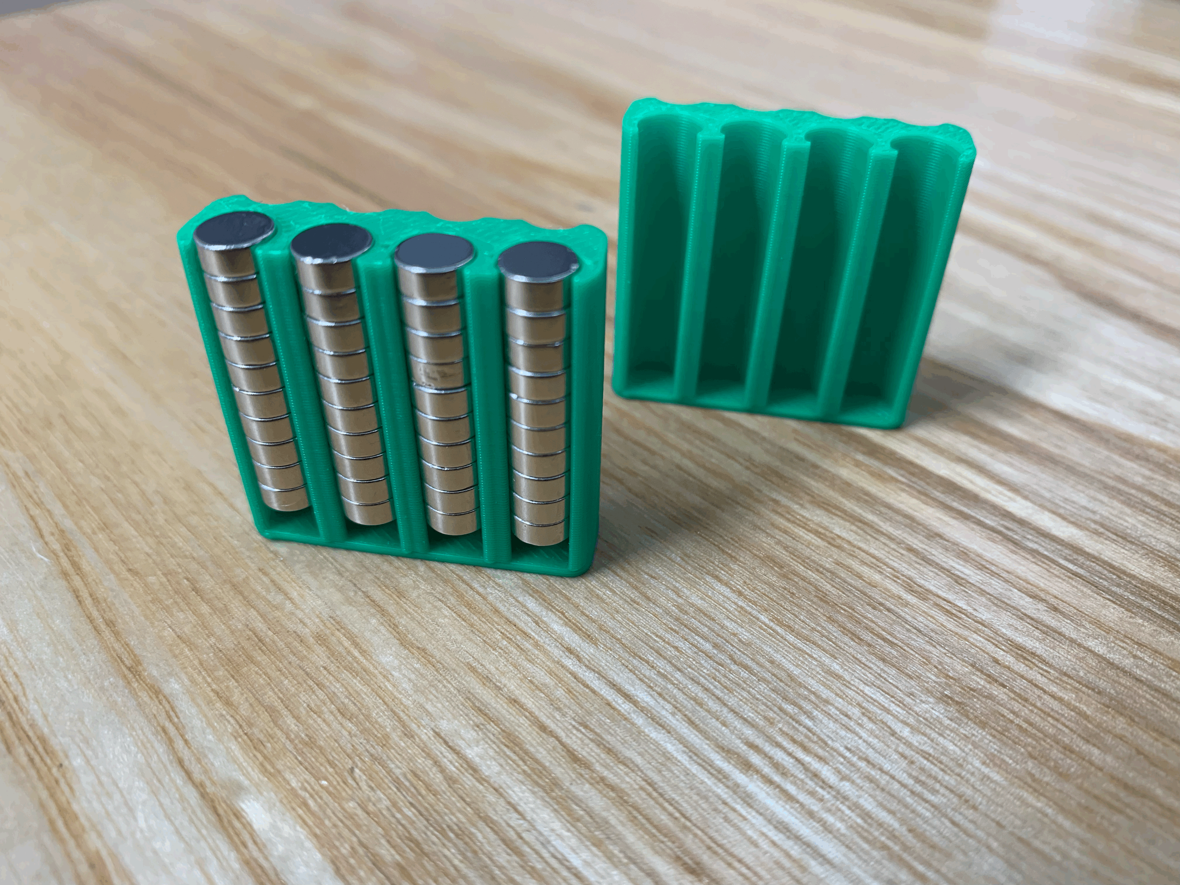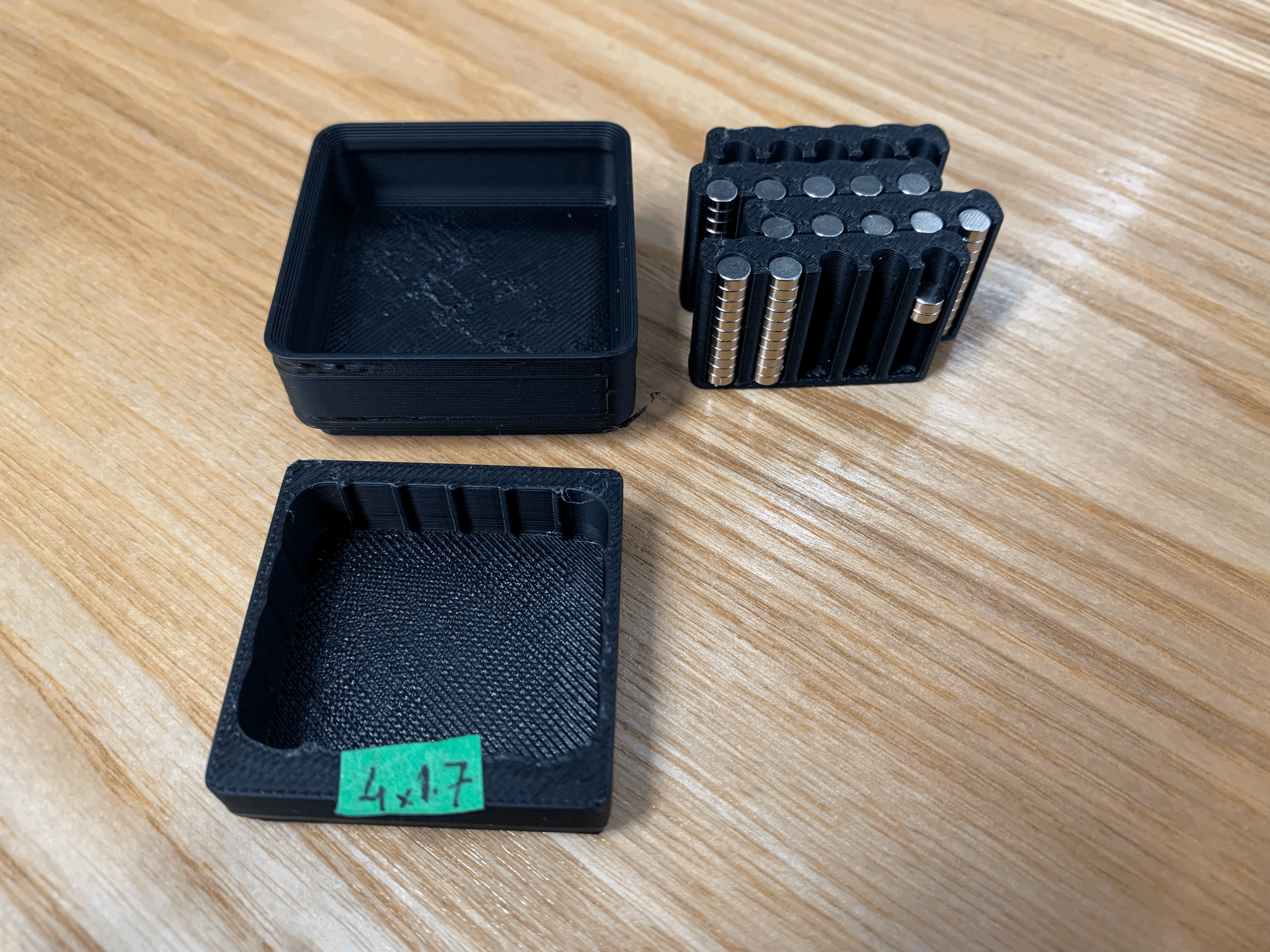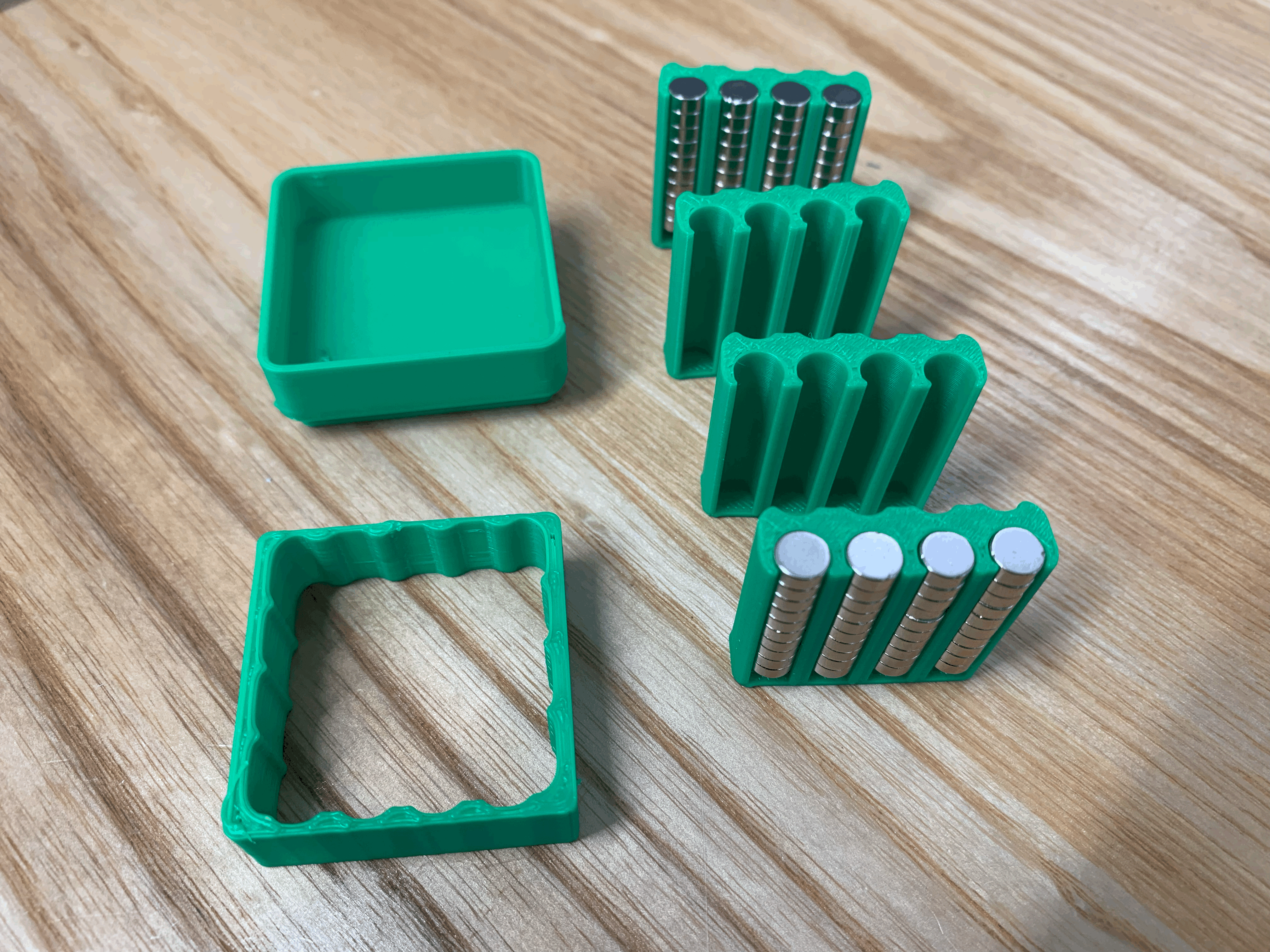 Mình muốn tìm một cách để cất giữ nam châm và Gridfinity là một lựa chọn rất hợp lý. Hơn nữa, vì mình hay thay đổi ý định nên mình đã thiết kế các phần cắt để có thể tháo rời được, nhờ vậy mà mình có thể tái sử dụng cái hộp đựng cơ sở.