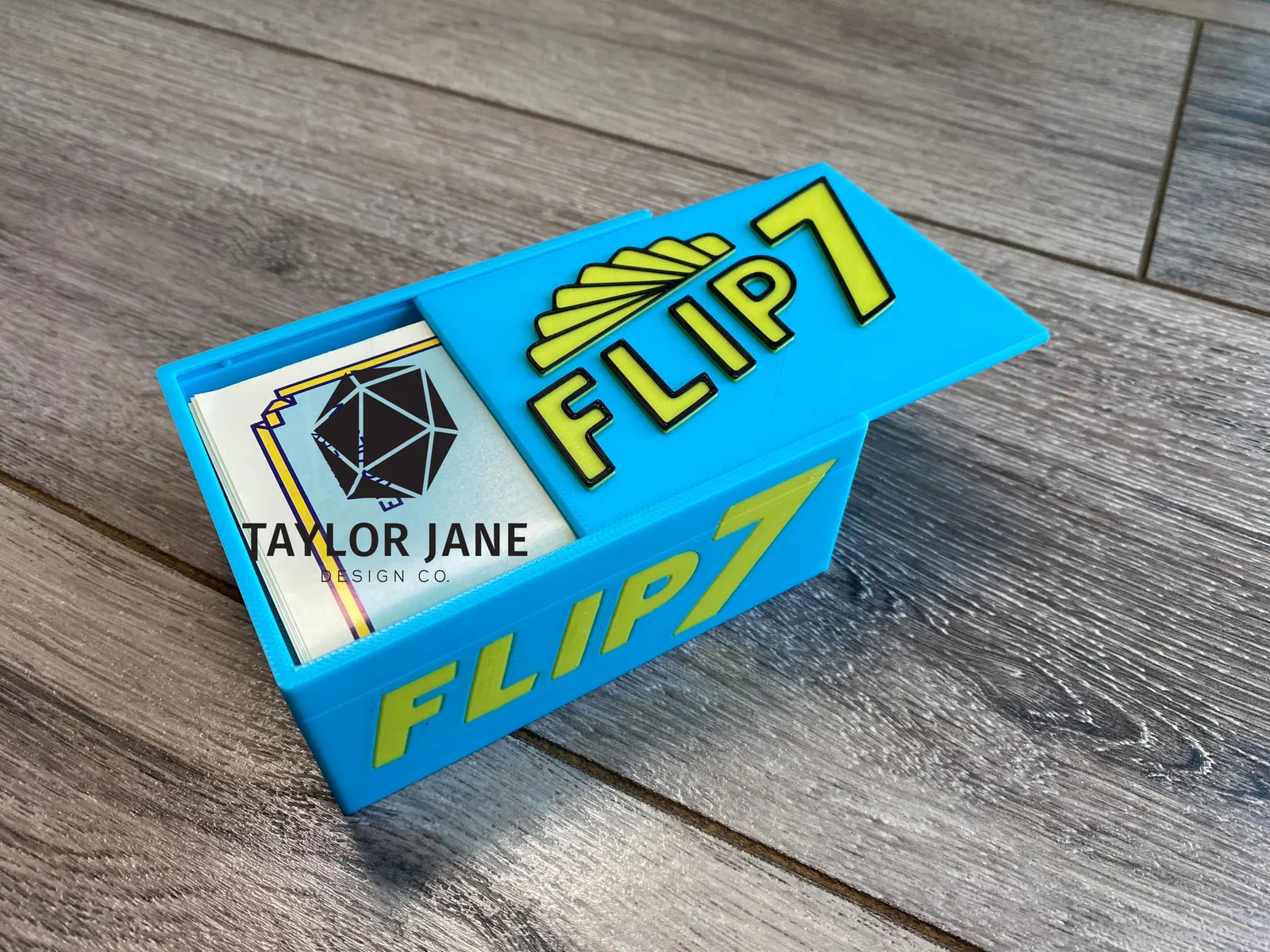 Hộp đựng nhỏ gọn cho Flip 7 phiên bản Big Box. Thiết kế chuyên dụng cho thẻ bài 89mm x 63mm, có thể chứa bài đã bọc sleeve, kèm sách luật. Hộp đa năng dùng làm khay đựng bài khi chơi, dễ dàng tùy chỉnh màu sắc và kiểu dáng.