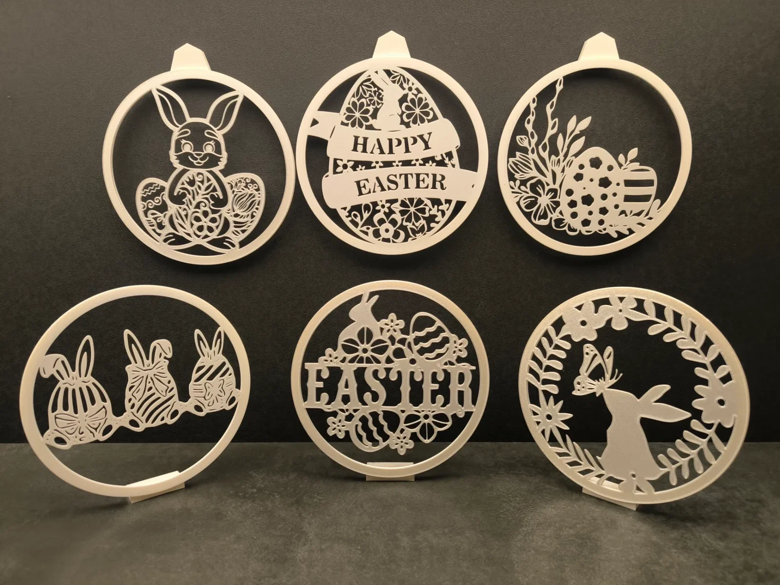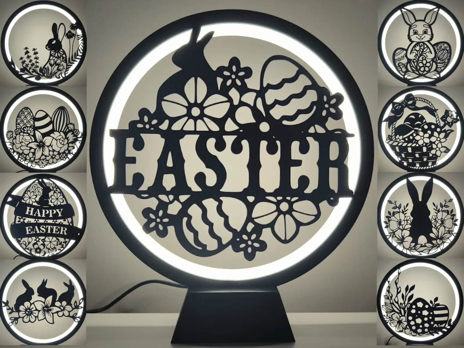 Đây là bộ tấm trang trí chủ đề Phục Sinh (Easter) mà mình thiết kế cho đèn Ring Lamp của mình. Mẫu này hoạt động tốt với Ring Lamp II (đường link bên dưới) - mình đã có sẵn các file cho đèn và hướng dẫn lắp ráp đi kèm. Ngoài ra, các tấm panel này cũng có thể dùng làm vật trang trí độc lập nhờ có thêm phần chân đế và móc treo đi kèm.