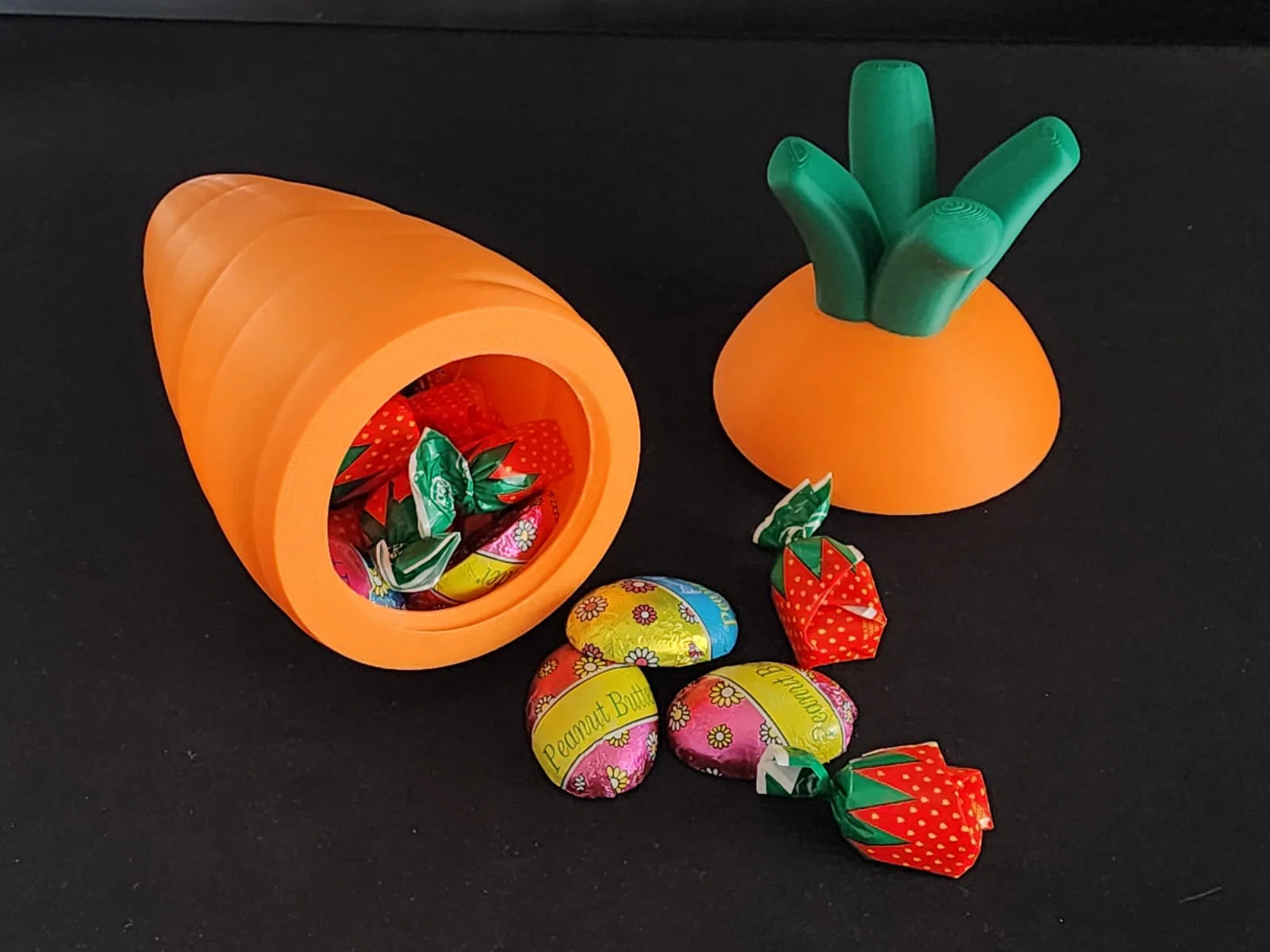 Làm cho dịp lễ Phục sinh này trở nên đặc biệt hơn với chiếc cà rốt ẩn giấu đầy thú vị này! Thiết kế thông minh của nó làm cho đây trở thành một chỗ giấu kẹo, sô-cô-la và những món quà nhỏ tuyệt vời. Rất hoàn hảo cho các trò chơi tìm trứng Phục sinh, giỏ quà, hoặc làm một món quà bất ngờ đầy vui nhộn cho cả trẻ em lẫn người lớn. Hãy lấp đầy nó bằng những món quà ngọt ngào và tạo nên những kỷ niệm Phục sinh không thể nào quên!