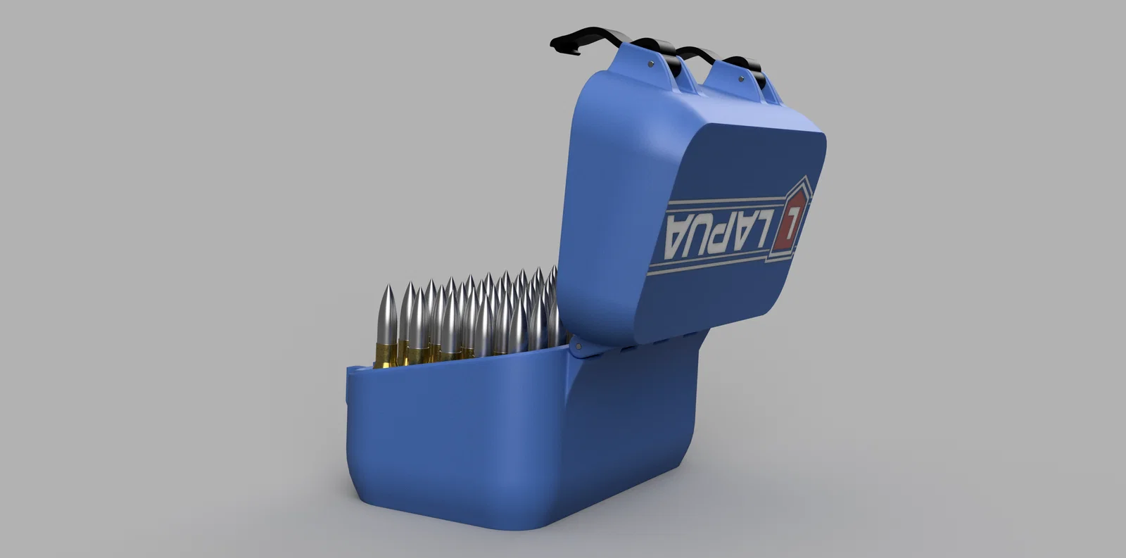Mẫu hộp đựng đạn .338 Lapua với sức chứa 50 viên, đi kèm đáy mới cho kích thước 95,5mm. Thiết kế có khóa chốt bằng que inox 2mm và tùy chọn vòng đệm TPU để kín khít. Phù hợp in với nhiều loại nhựa, đặc biệt bền bỉ nếu in chốt bằng ABS.