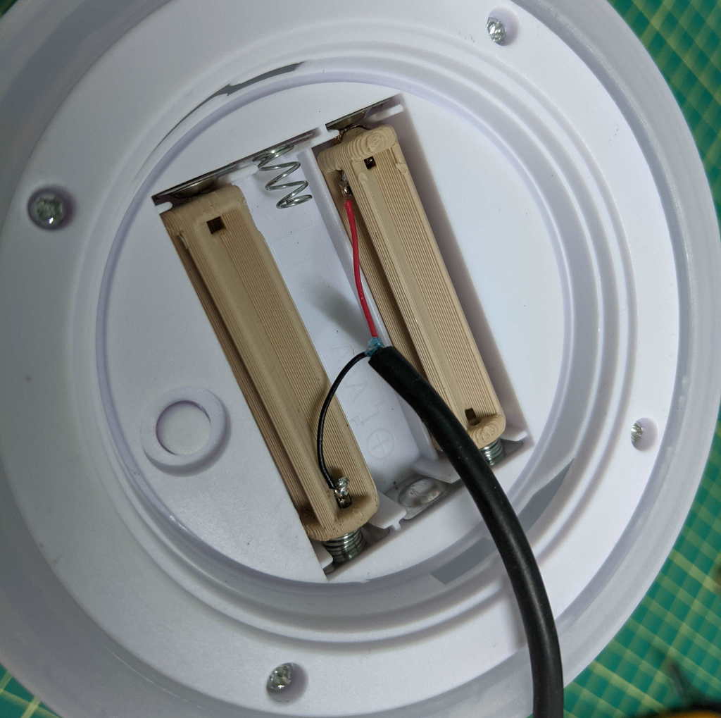 Ba viên pin kiềm (alkaline) nối tiếp sẽ cho điện áp 4.5V, rất phù hợp với nguồn USB 5V. Các bạn chỉ cần hàn dây đỏ và đen từ một sợi cáp USB cũ (tận dụng từ chuột máy tính hỏng hoặc đồ mua ở tiệm đồ cũ) vào cực âm và dương của hai viên pin giả, sau đó lắp chúng vào thiết bị. Với thiết bị dùng 4 viên pin (6V), hầu hết các món đồ chơi vẫn hoạt động tốt khi cấp nguồn 5V từ USB.
