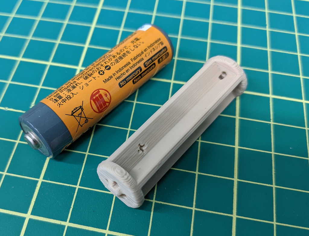 Thiết kế này có các lỗ ở hai đầu để đi dây và làm điểm tiếp xúc (mình thường dùng bấc hàn - solder wick để làm tiếp điểm). Các bạn cũng có thể dùng viên pin giả này như một đoạn nối tắt dẫn điện trực tiếp.