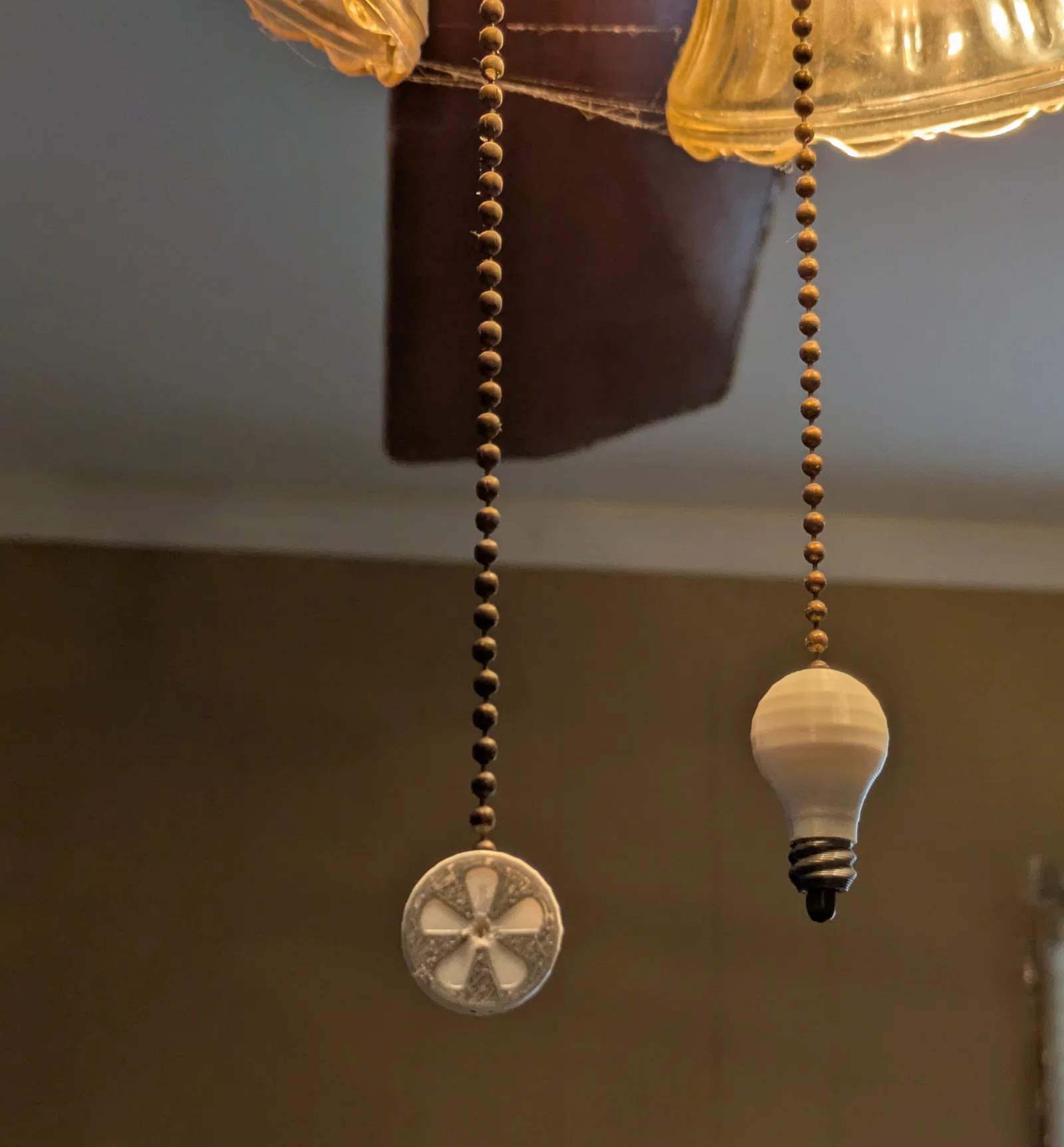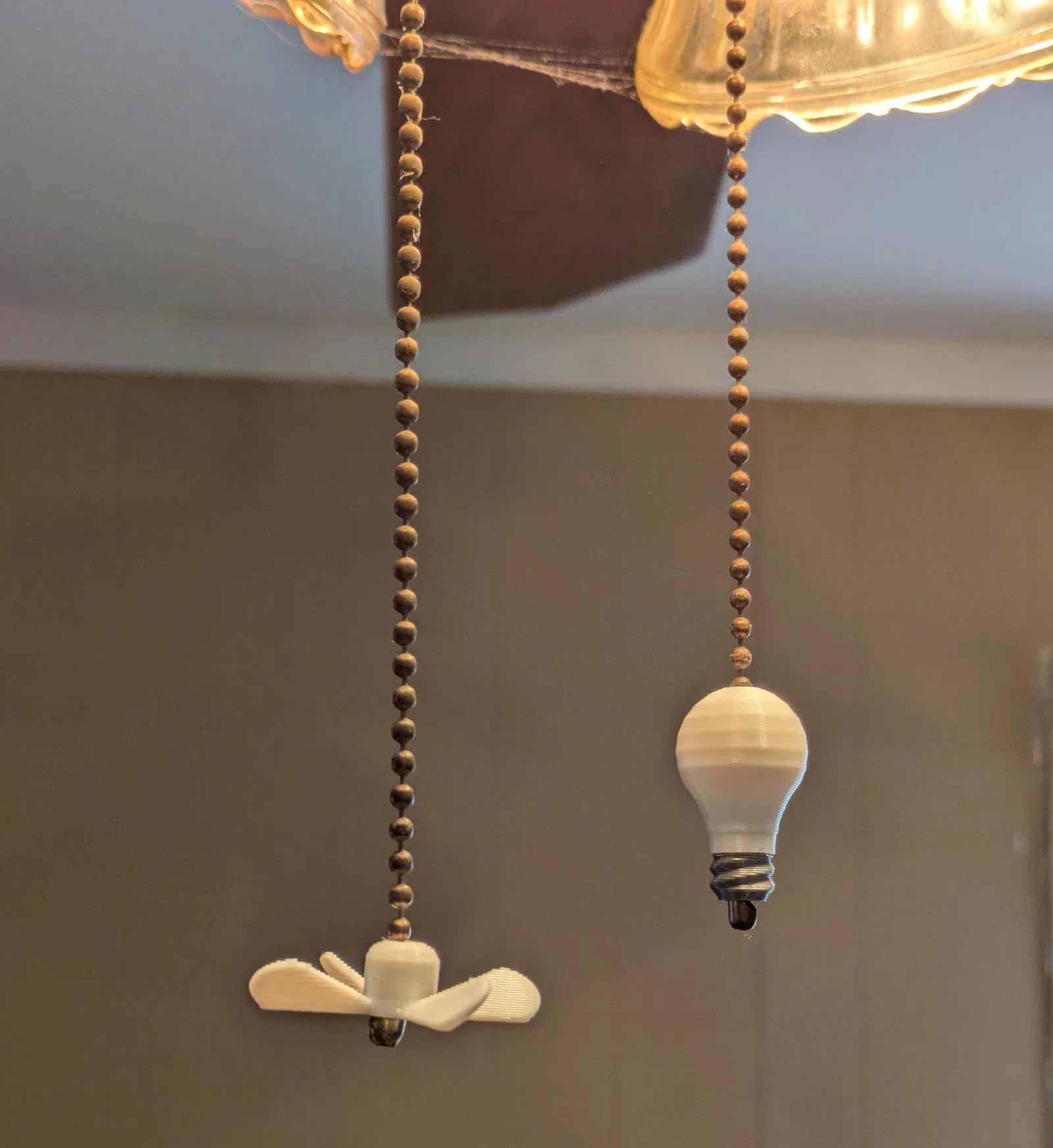 Đây là các hạt trang trí dùng để đánh dấu dây kéo cho đèn và quạt trần, giúp bạn không còn phải hoang mang khi lỡ kéo nhầm dây nữa. Đường kính các mắt xích trên dây kéo của mình lớn hơn 3mm (~1/8 inch) một chút, nên bạn có thể cần chỉnh lại tỉ lệ (scale) mẫu in nếu dây nhà bạn có kích thước khác nhé. Mình có hai phiên bản: bộ 3D như hình và bộ phẳng (flat) trông có vẻ tiện dụng hơn. Ở phiên bản phẳng, các ký hiệu được làm lõm xuống, giúp bạn dễ dàng thay đổi loại nhựa (filament swap) để tạo hiệu ứng hai màu bắt mắt.