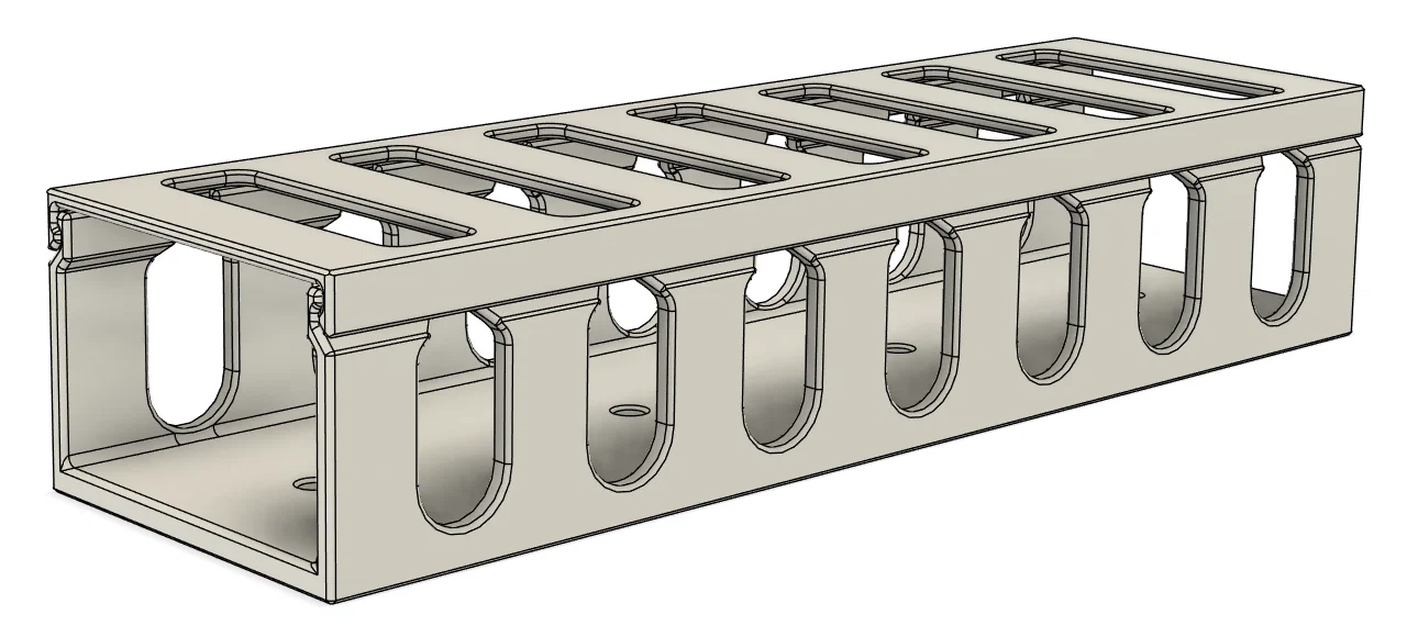 Máng đi dây cáp cực tiện lợi, cho phép bạn tùy chỉnh kích thước dễ dàng bằng thông số trong Fusion 360. Thiết kế kèm lược và lỗ bắt vít linh hoạt, có sẵn các file STL cho nhiều kích thước khác nhau và ngàm gắn thanh DIN rail cho máy Zero G.