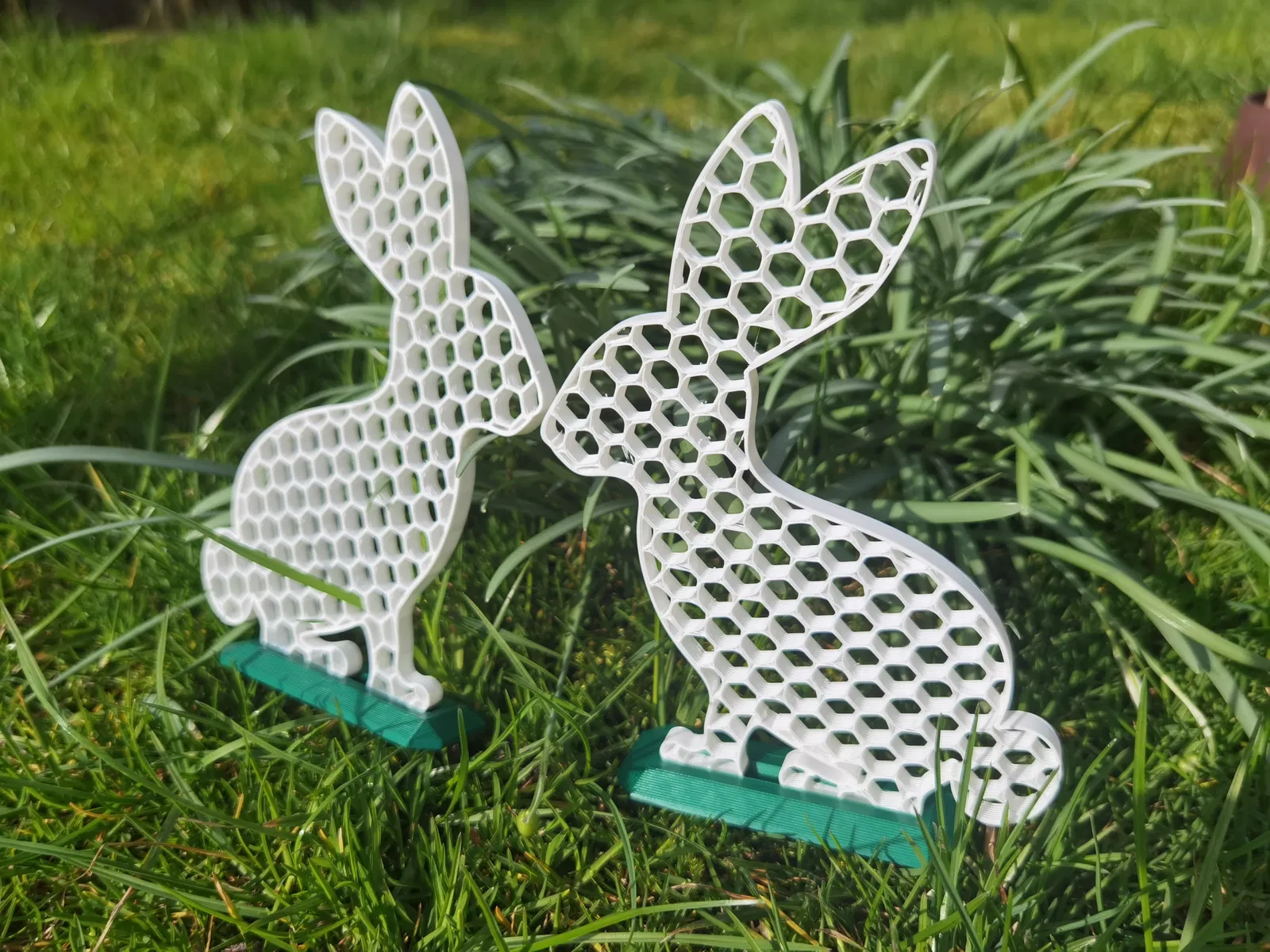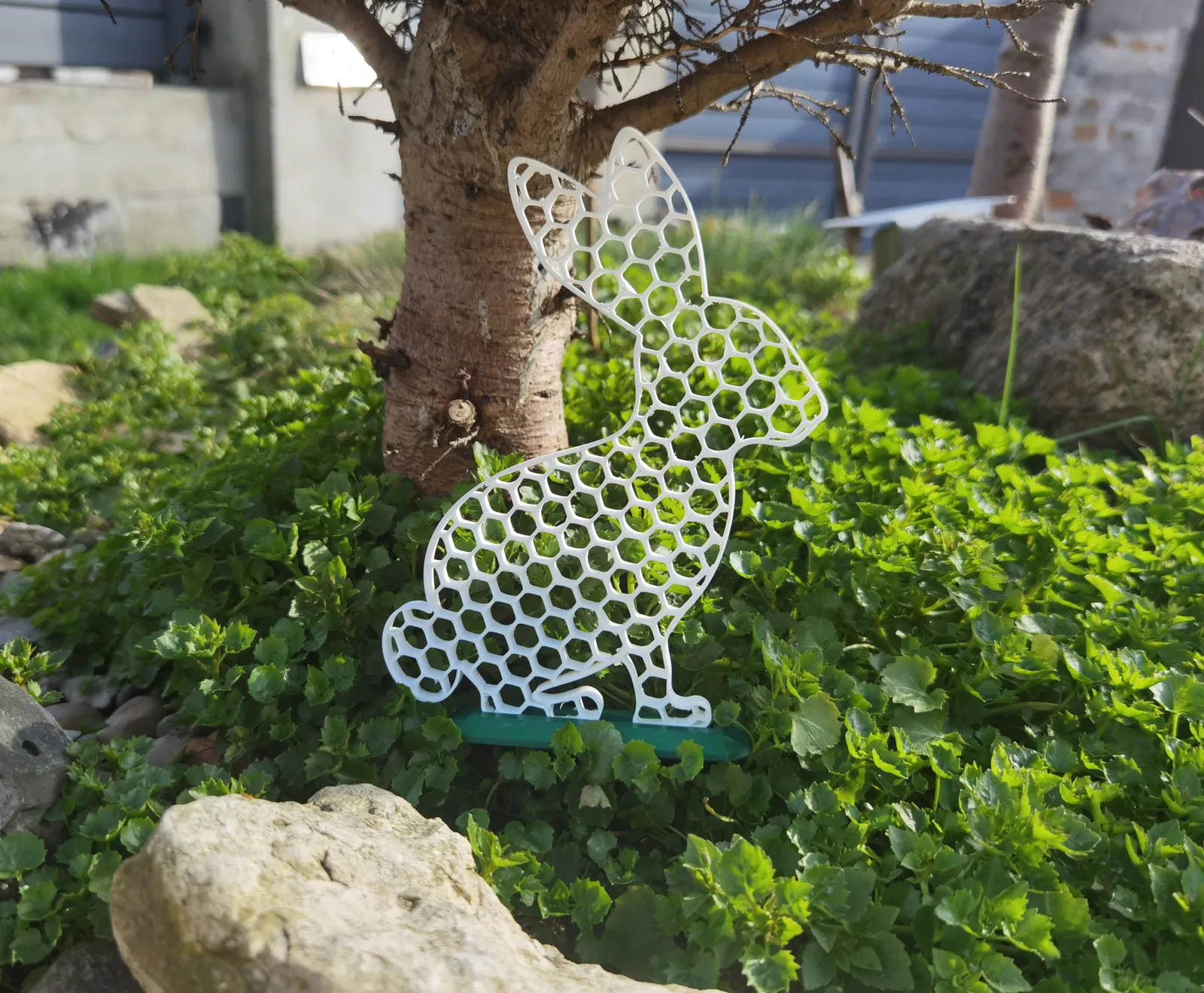 Mẫu in 3D chú thỏ họa tiết tổ ong độc đáo cho dịp lễ Phục sinh. File được thiết kế tối ưu, in cực nhanh, trọng lượng nhẹ, không cần support và không cần linh kiện lắp ráp. Phù hợp để làm vật phẩm trang trí trong nhà hoặc ngoài trời.