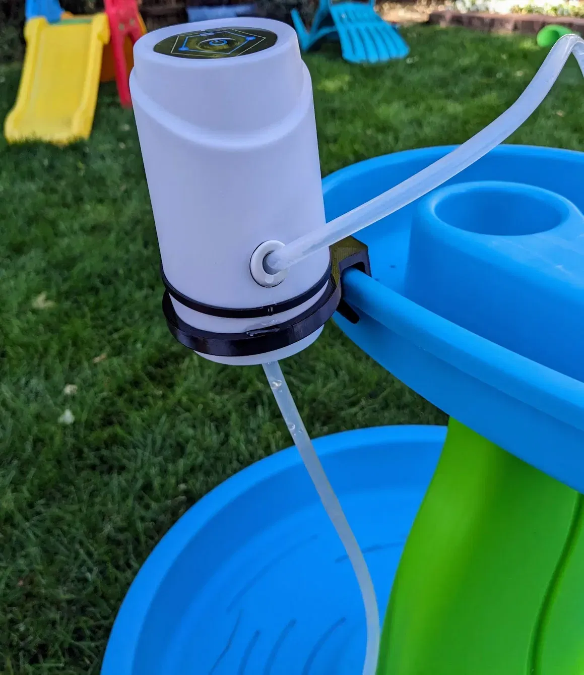 Một bộ chuyển đổi đơn giản để gắn một máy bơm nước giá rẻ lên một bàn nước cho trẻ em.