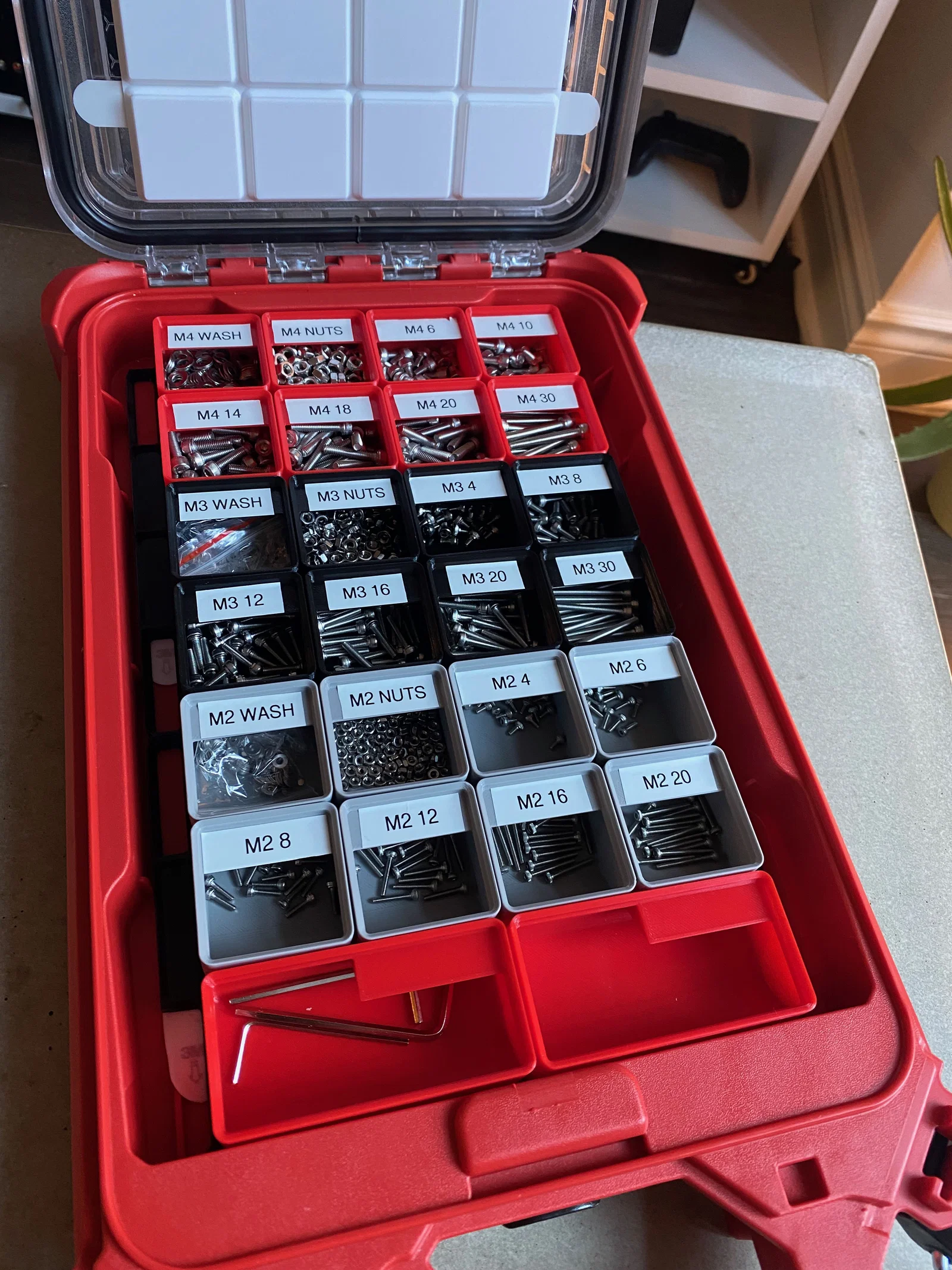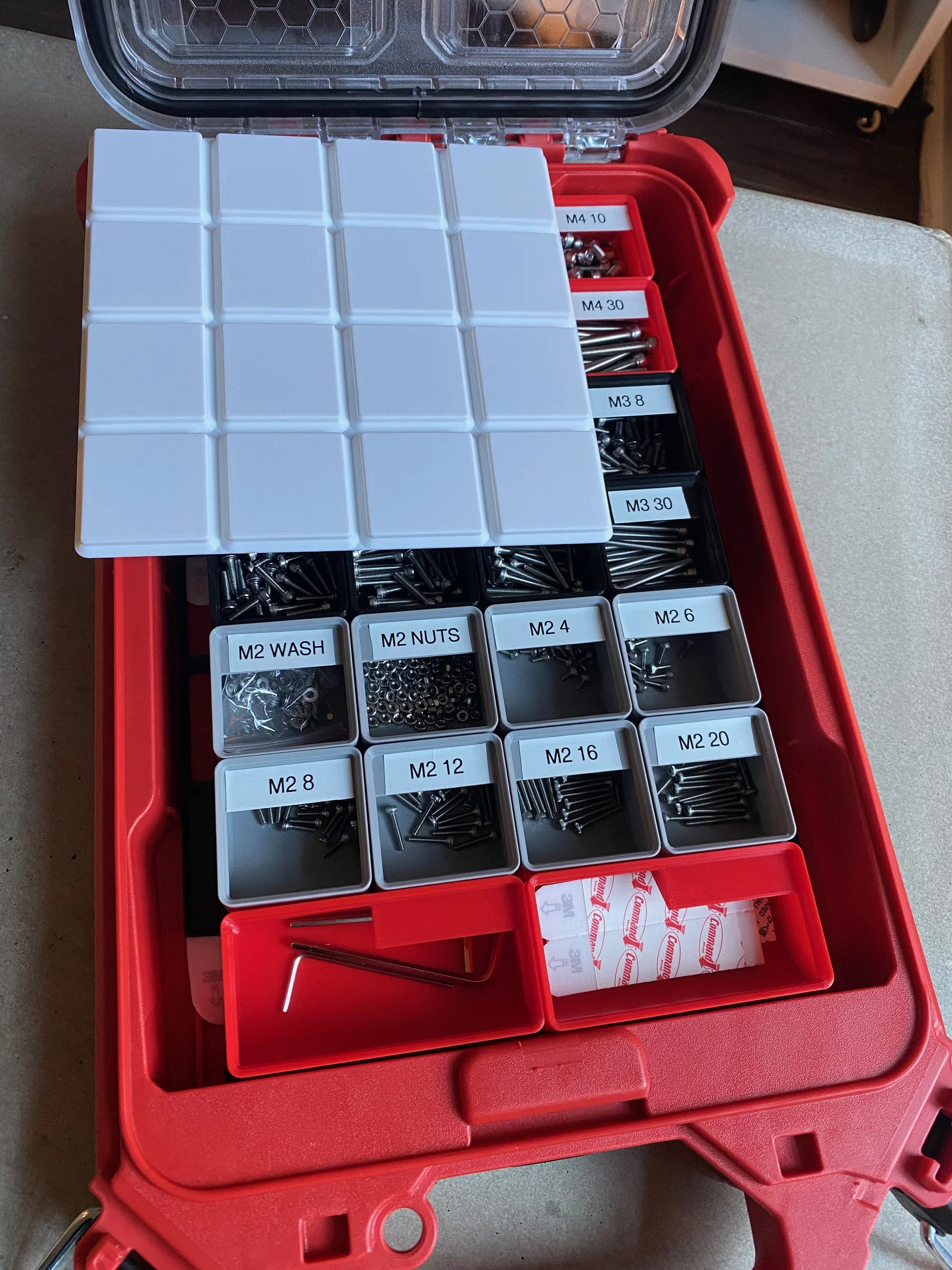 Bộ miếng lót khay Gridfinity chuyên dụng cho Milwaukee Packout Low Profile Compact Organizer. Cập nhật mới giúp lắp đặt dễ dàng không cần cắt tỉa, hỗ trợ nhiều kích thước hộp đựng đa năng, giúp không gian làm việc của bạn gọn gàng và ngăn nắp hơn.