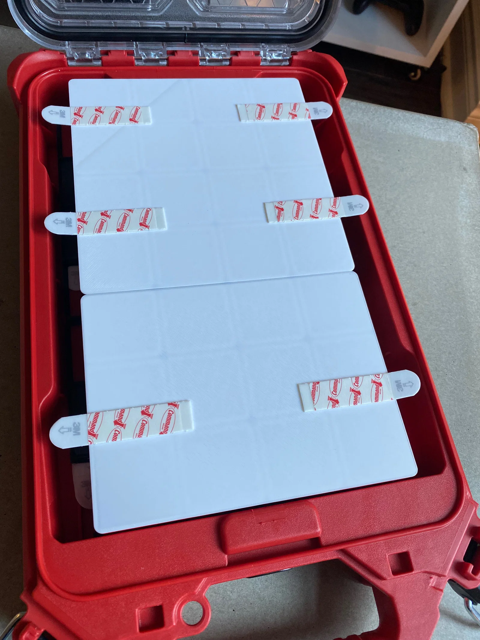Bạn hãy dùng miếng dán 3M Command để cố định tấm đế và tấm nắp.
