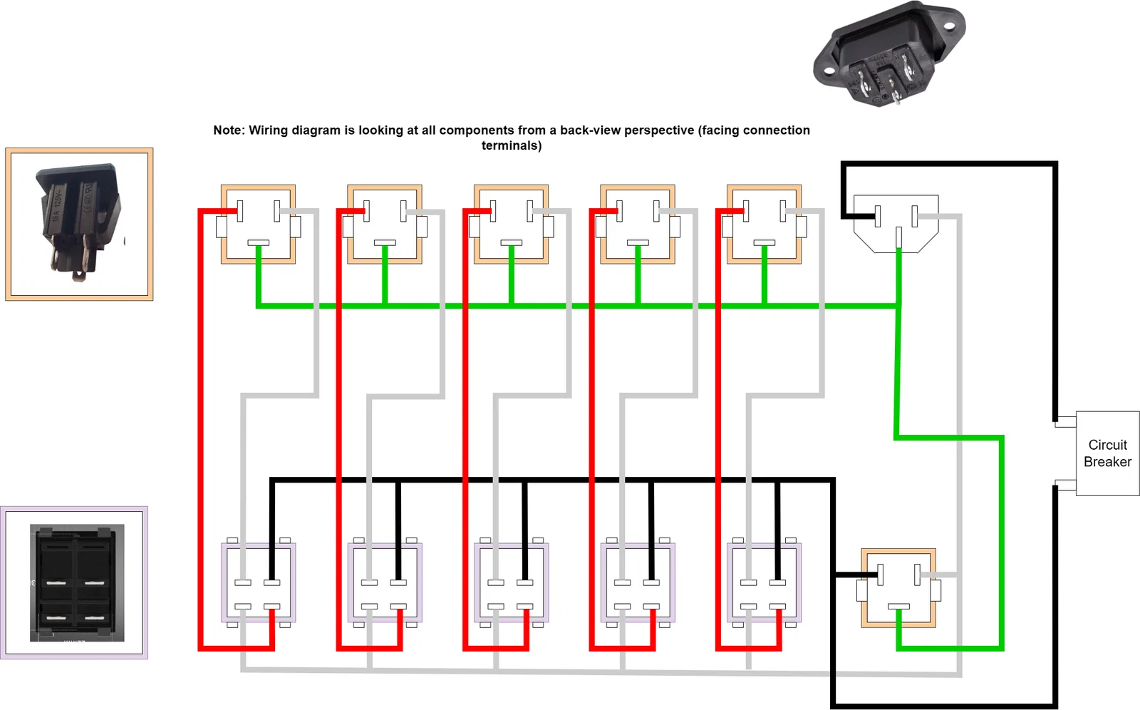 Ngoài ra, các đường dây màu đỏ trong sơ đồ chỉ là để phân biệt với dây nóng (màu đen). Thực tế thì mình dùng dây đen cho cả hai luôn nhé.