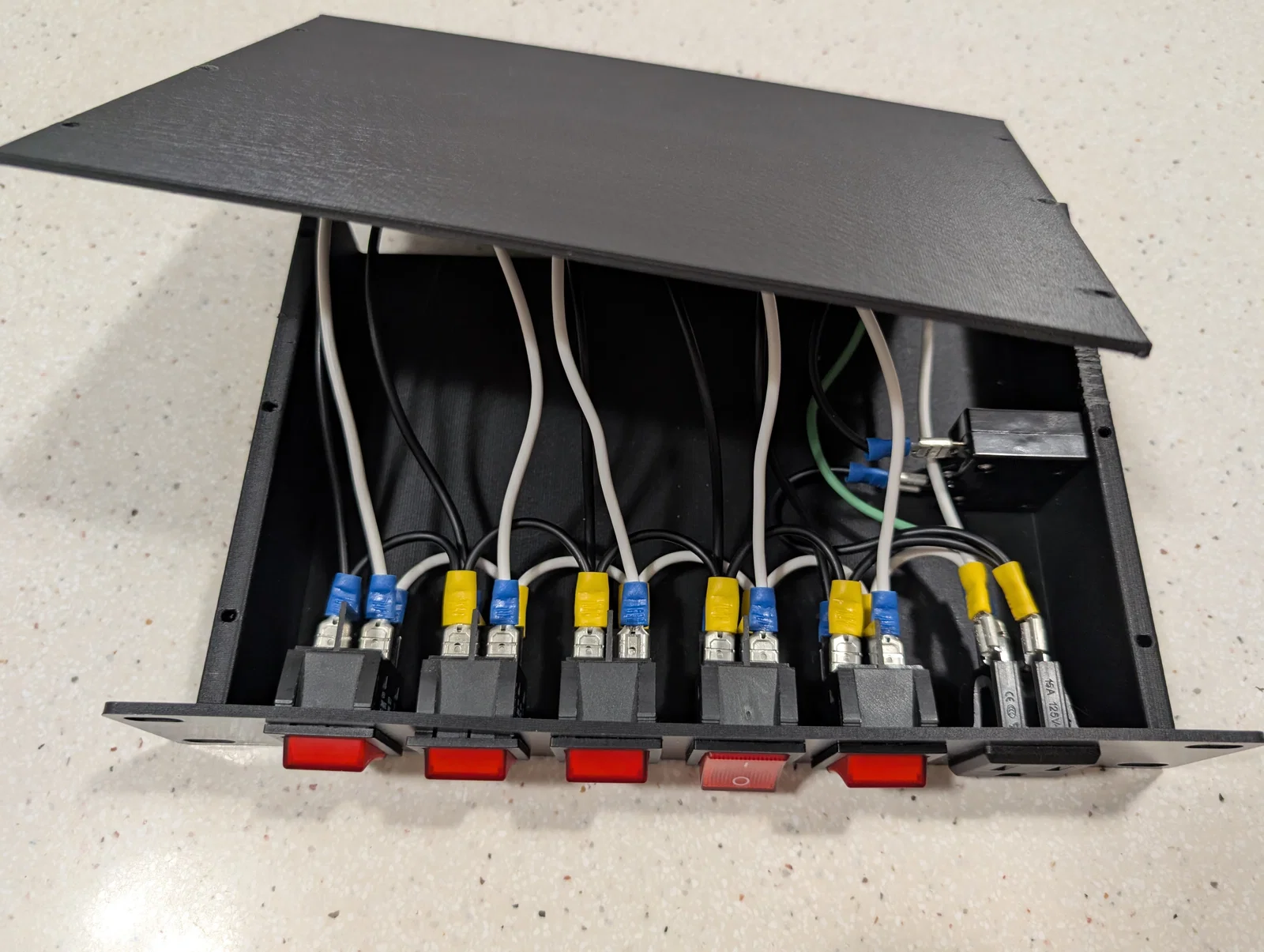 PDU gắn rack 10-inch với 5 ổ cắm có công tắc điều khiển và 1 ổ cắm luôn bật ở mặt trước. Giải pháp tự in 3D hoàn hảo cho anh em dùng tủ rack homelab nhỏ gọn, cần sự ngăn nắp cho các thiết bị mạng.