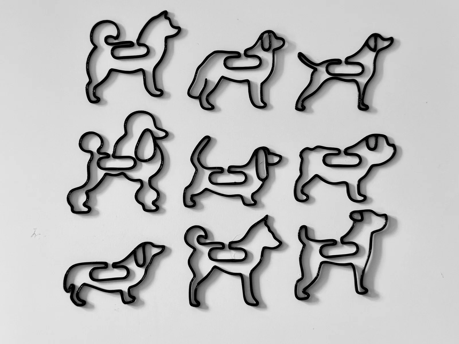 🐾 Chín Giống Chó – Bao gồm Poodle, Akita Inu, Shiba Inu, Dachshund, Pug, Golden Retriever và các giống chó khác. 🐾 Thẩm mỹ & Công năng – Chủ yếu dùng để trang trí, những chiếc kẹp này không thể kẹp giấy chắc chắn như kẹp giấy thông thường, nhưng cực kỳ hợp để làm dấu sách (bookmark). 🐾 Dễ in – Không cần support; in phẳng để đạt chất lượng tốt nhất.
