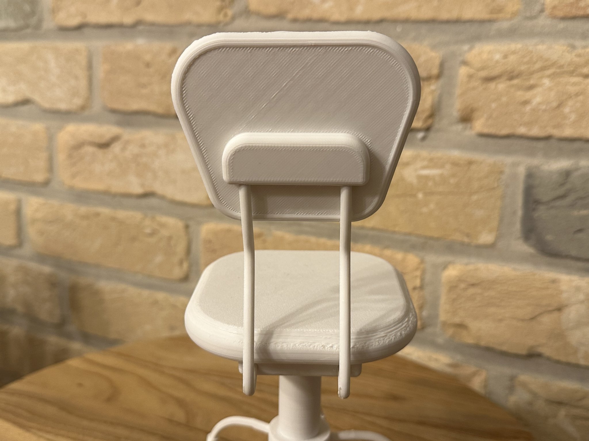 Ghế văn phòng in 3D cho búp bê Barbie là một món đồ nội thất mini được thiết kế riêng, mang lại sự thoải mái tối đa khi chơi. Nó có các đặc điểm sau: