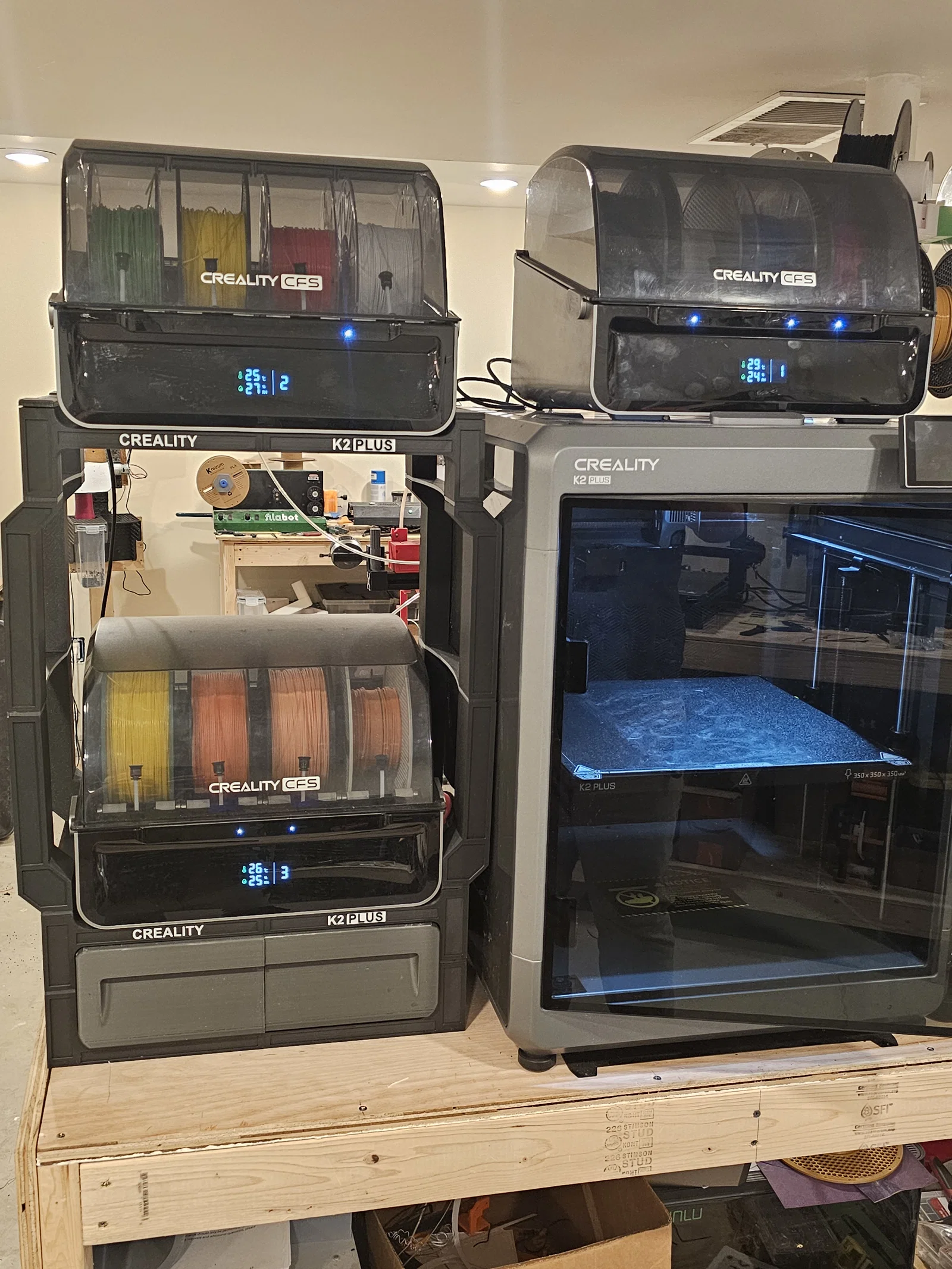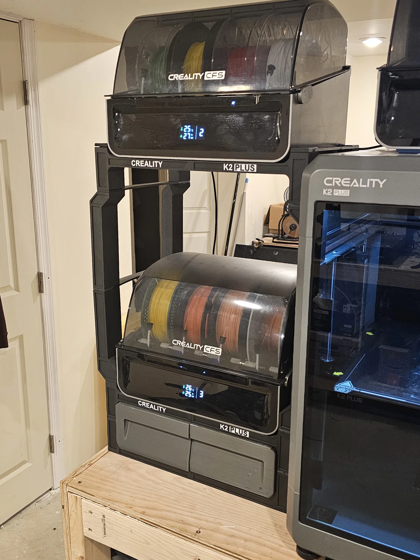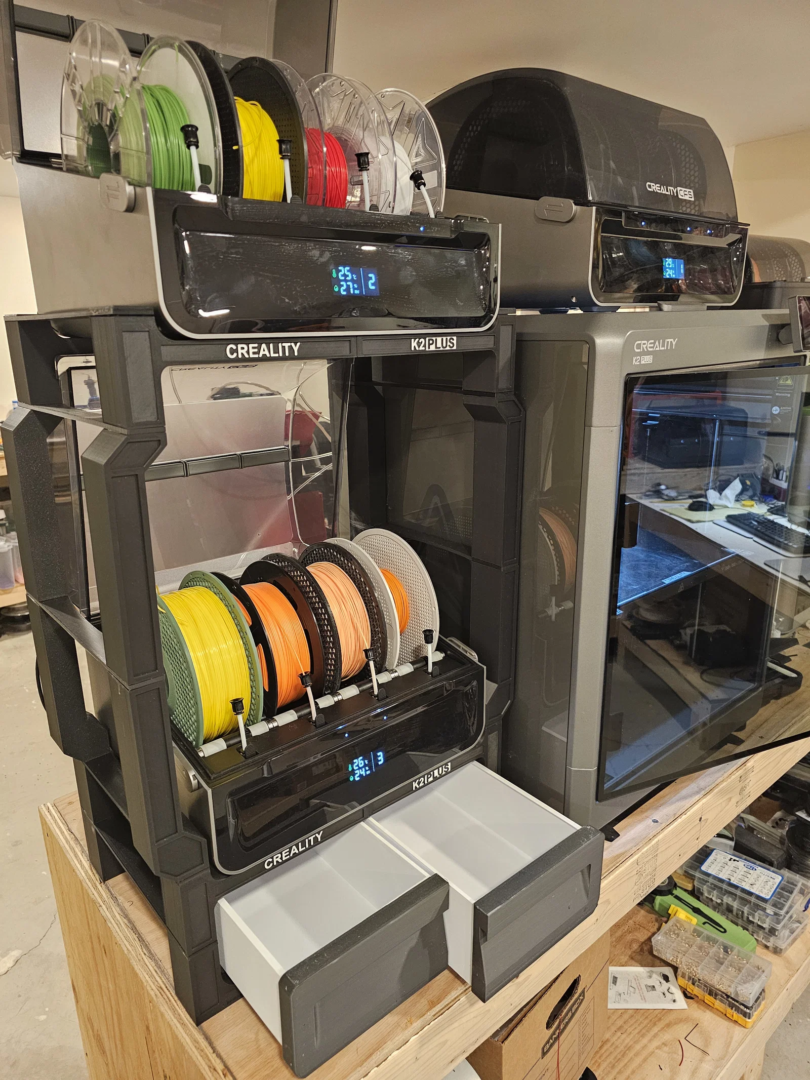 Bạn đang gặp khó khăn khi sắp xếp các bộ CFS cho máy in Creality K2 Plus? Bộ khung kệ đỡ 3D chuyên dụng này chính là giải pháp hoàn hảo để bạn tối ưu hóa không gian làm việc. Với thiết kế chắc chắn, sản phẩm cho phép bạn xếp chồng nhiều bộ CFS một cách gọn gàng, đồng thời tích hợp thêm các ngăn kéo tiện ích để cất giữ dụng cụ. Không chỉ tương thích với K2 Plus, kệ còn hỗ trợ tốt cho dòng K1 series, giúp hệ thống cấp liệu của bạn trở nên khoa học, ngăn nắp và chuyên nghiệp hơn rất nhiều. Hãy cùng tìm hiểu cách in và lắp đặt bộ kệ này để nâng tầm không gian in 3D của bạn ngay hôm nay.