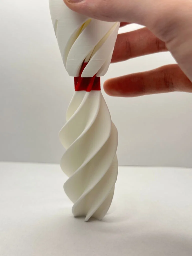 Nhựa sử dụng cho cả thân và xoắn ốc: White PLA của Bambu và Red PLA của Creality.