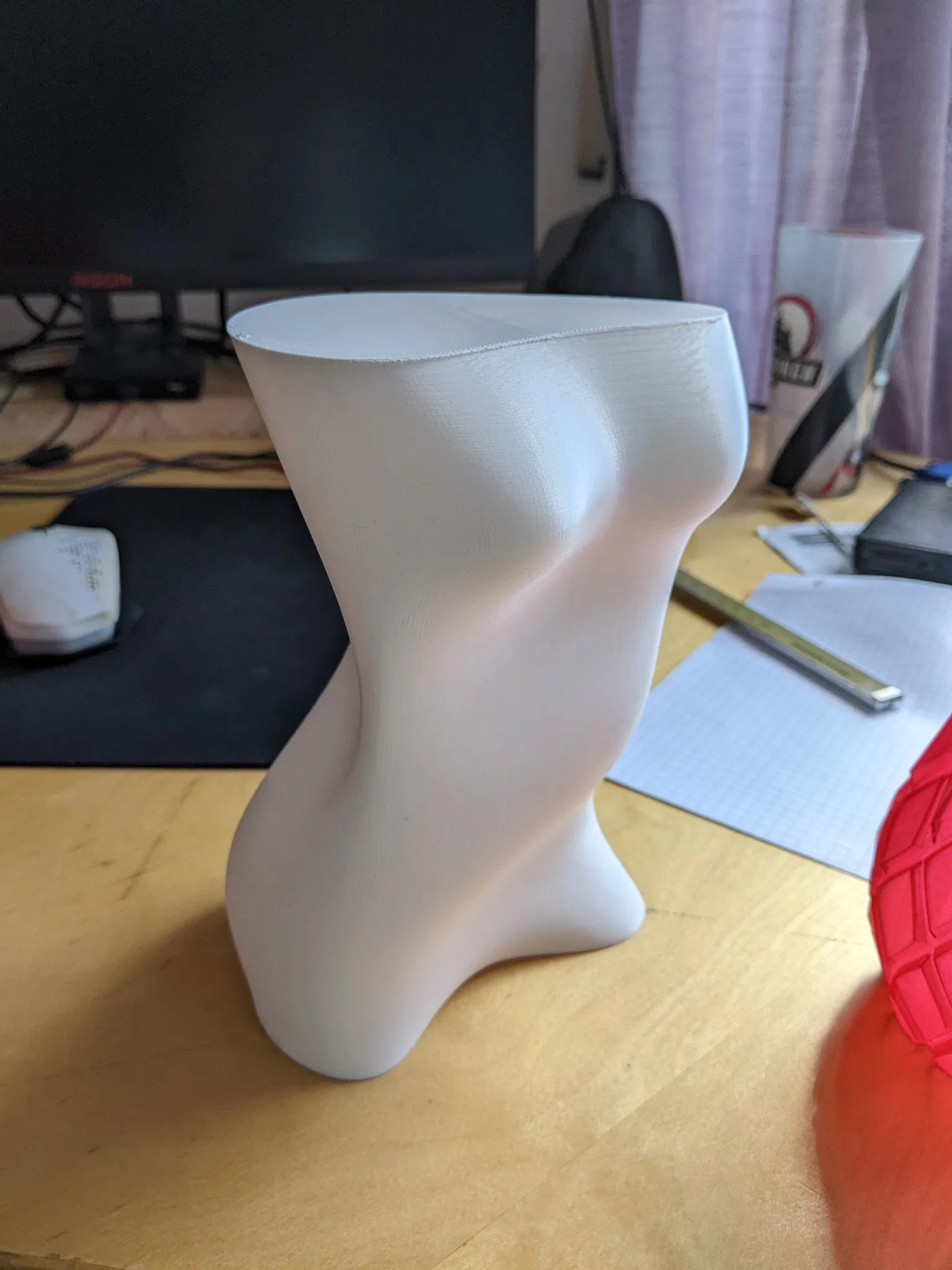 Hướng dẫn in 1. Tôi đã phóng to mô hình một chút. (X,Y,Z = 1.4) 2. Tôi đã sử dụng chế độ bình hoa với độ dày tường cao/chiều rộng lớp là 0.65mm trên vòi phun 0.4mm của tôi. 3. Tôi đã đặt 3 lớp rắn ở dưới và 5 lớp rắn ở trên. 4. Không sử dụng vật liệu đổ đầy mặc dù tôi đã gặp khó khăn trong việc kết nối các lớp rắn phía trên do không có vật liệu đổ đầy trong chế độ bình hoa.