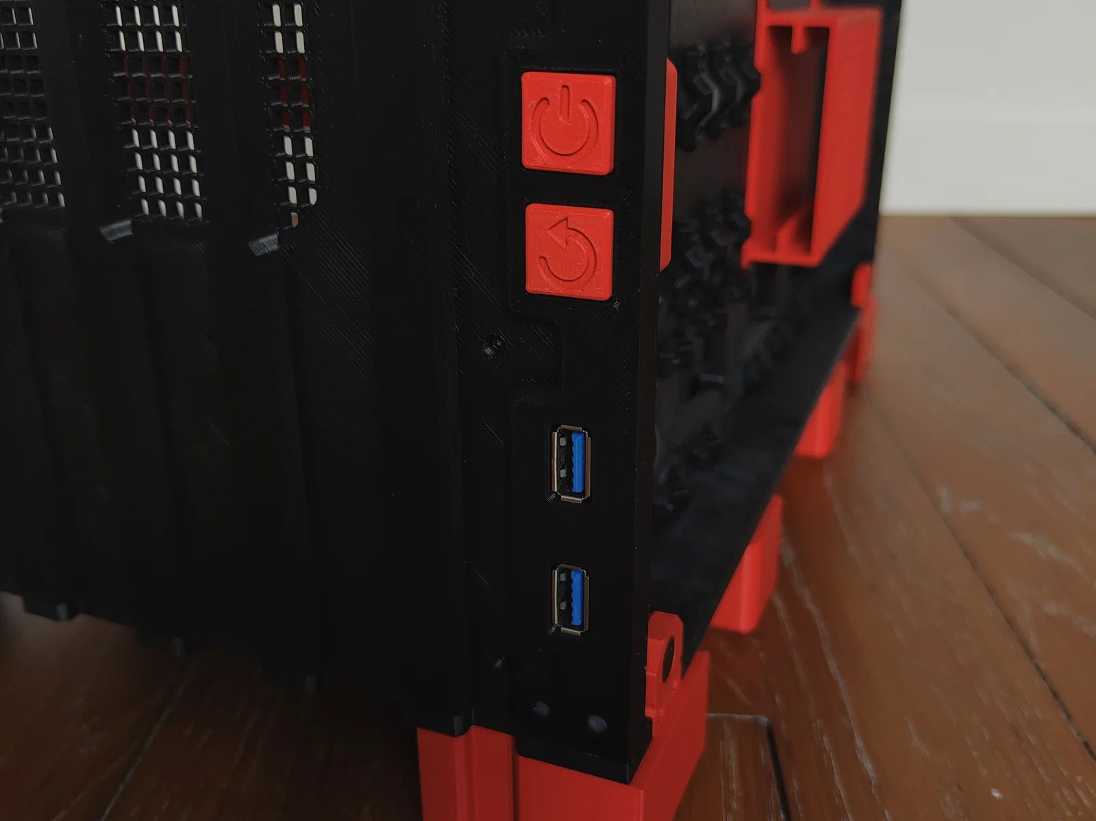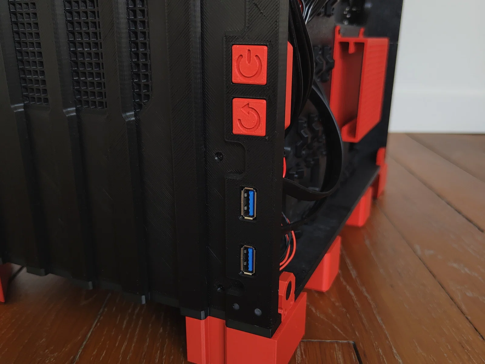 Bộ case này được in bằng nhựa PETG màu đen để đảm bảo độ cứng cáp, phối cùng nhựa PLA nhám màu đỏ sẫm để làm điểm nhấn. Tất nhiên, bạn hoàn toàn có thể tùy chỉnh màu sắc theo ý thích của mình! 🎨