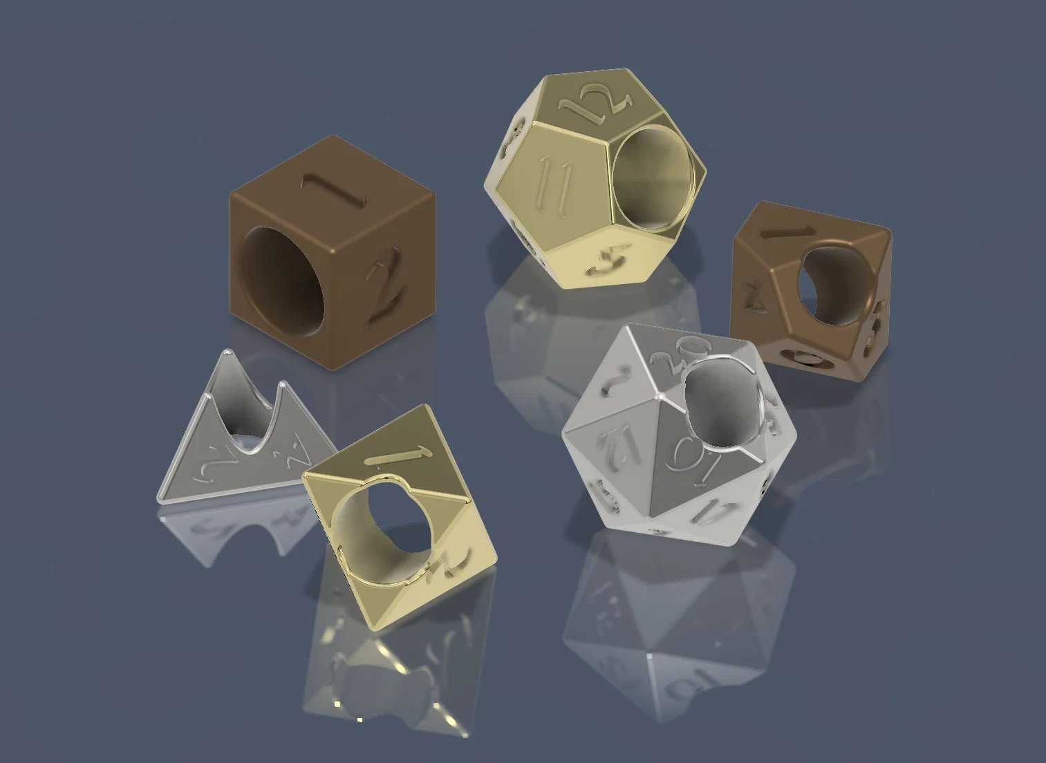 Trọn bộ hạt xúc xắc với tùy chọn lỗ xỏ kích thước từ 8-11mm hoặc 7mm. Phù hợp cho những ai yêu thích phong cách D&D, dùng để trang trí hoặc làm phụ kiện cá tính.