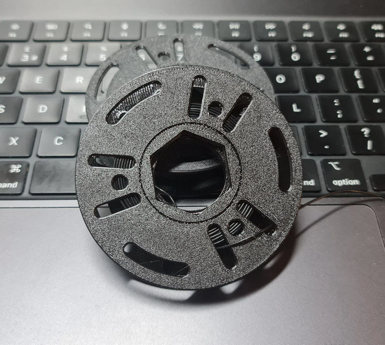 Mình đang dùng dây điện 26 AWG PTFE, mà mấy cái cuộn nhỏ nhìn vẫn thấy hơi cồng kềnh. Thế nên mình đã remix lại bản này với độ rộng 12 mm (bản gốc là 36 mm, còn bản nhỏ là 18 mm) để có thể đặt được ba cuộn trong một ngăn Gridfinity. Bạn nhớ dùng phần spoolsmal_b từ model gốc làm phần thứ hai nhé. Trong bức ảnh cuối, phía bên trái là bản remix này đang chứa 10 m dây 26 AWG PTFE, còn bên phải là cuộn nhỏ nguyên bản. Mình cũng muốn làm nó hẹp hơn nữa, nhưng vì model gốc không có file CAD nên chỉnh sửa trong Blender vất vả quá. Nếu bạn thấy khó khăn khi cố định dây vào phần góc, hãy thử đặt chúng theo thứ tự ngược lại giống như trong ảnh thứ hai. Mình vẫn đang suy nghĩ về thiết kế phần góc khác để giữ chắc ba sợi dây một cách độc lập. Lưu ý: Bạn không thể dùng đầu nối máy khoan điện cho cuộn ở giữa đâu nhé. Hãy cứ tháo dây ra một cách cẩn thận!