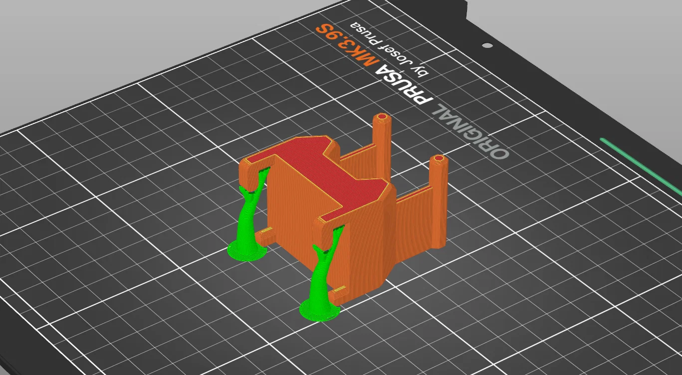 Vì các móc treo giờ đã được đặt theo chiều dọc, bạn sẽ cần dùng thêm support (hỗ trợ) cho các móc ở phía trên. Sử dụng Organic supports (hỗ trợ dạng hữu cơ) sẽ cho kết quả rất tốt với mẫu này.