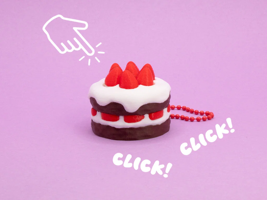 Chào mọi người! Tuần này mình mang đến cho các bạn một chiếc fidget clicker hình bánh kem dâu socola cực dễ thương! Mẫu này dành cho các máy in đa màu nha! Thiết kế bao gồm cả phần đế bánh có lỗ móc khóa và một bản không có lỗ. Lỗ móc khóa vừa với dây bi 2.4 mm, mọi người có thể tự gắn thêm các loại móc khóa khác nếu muốn nè!