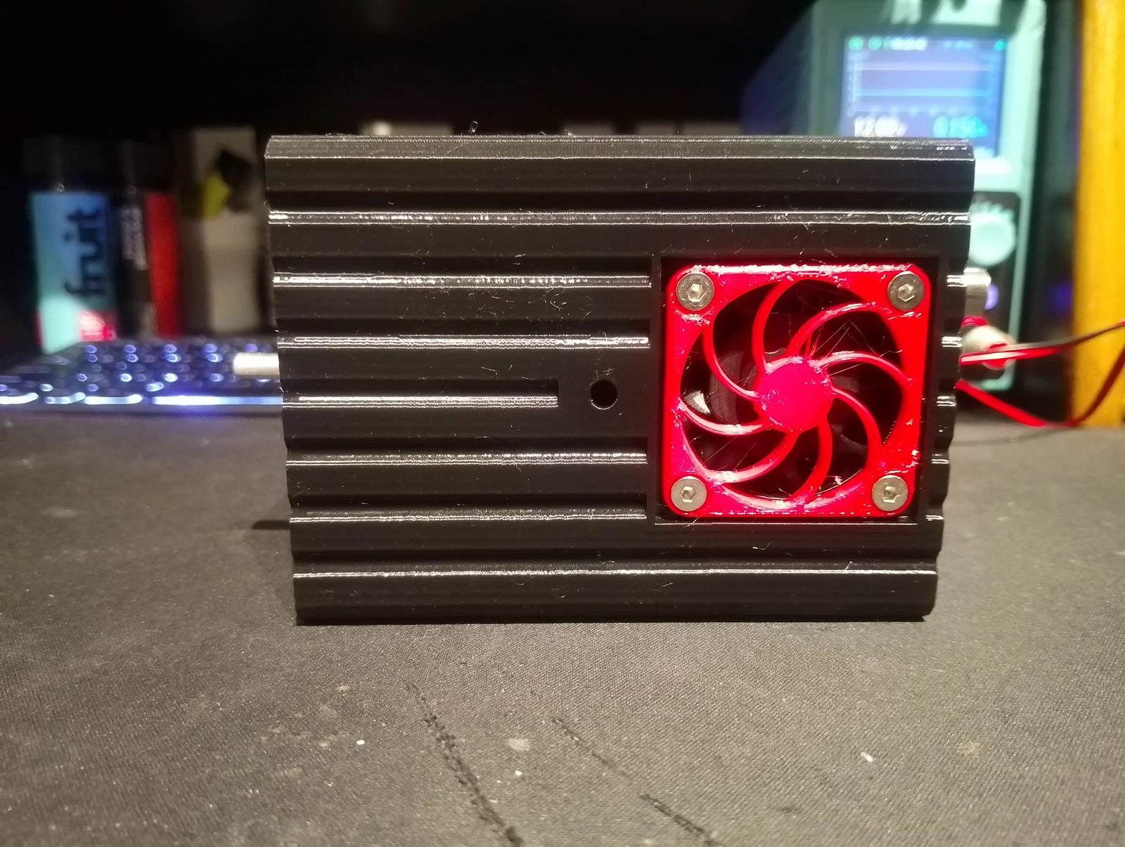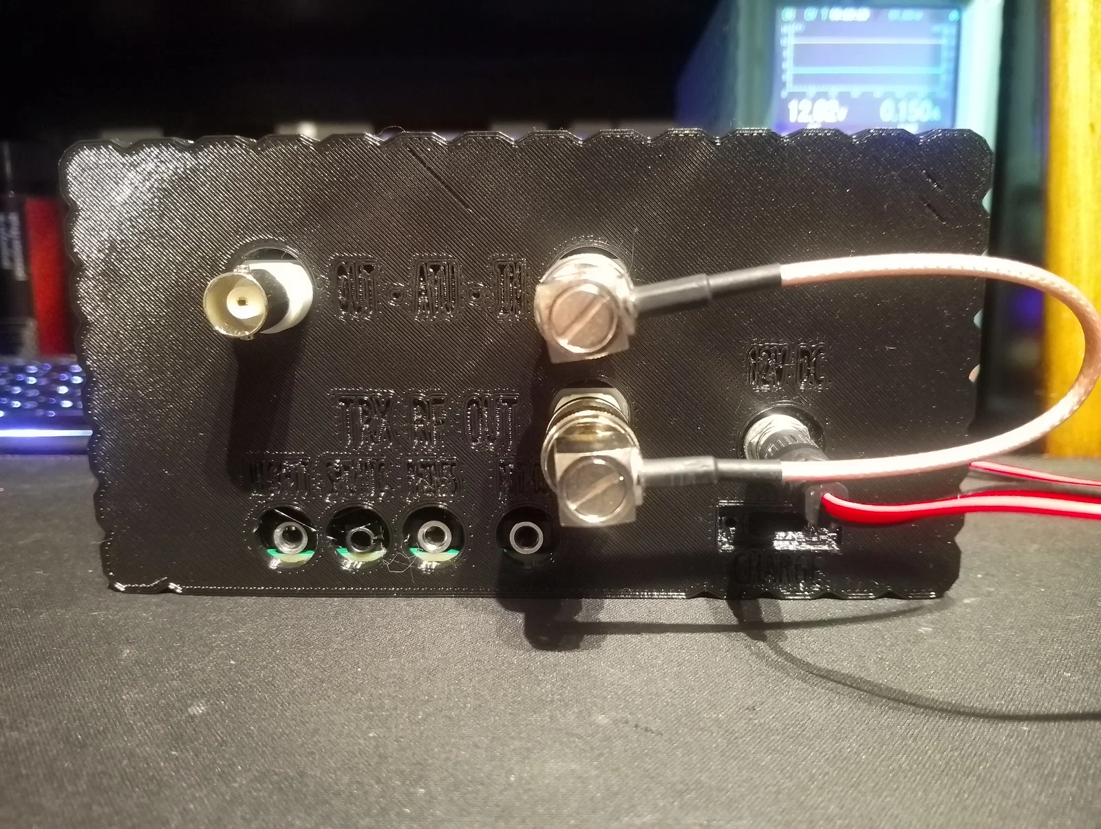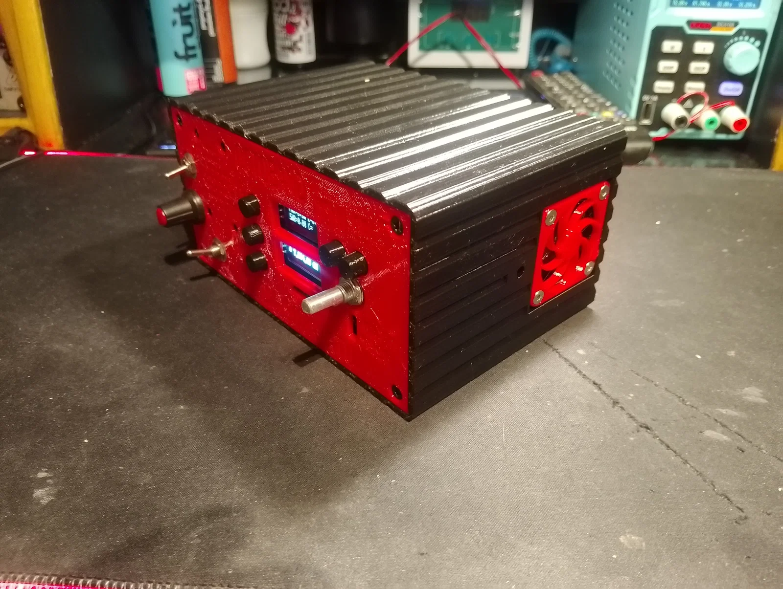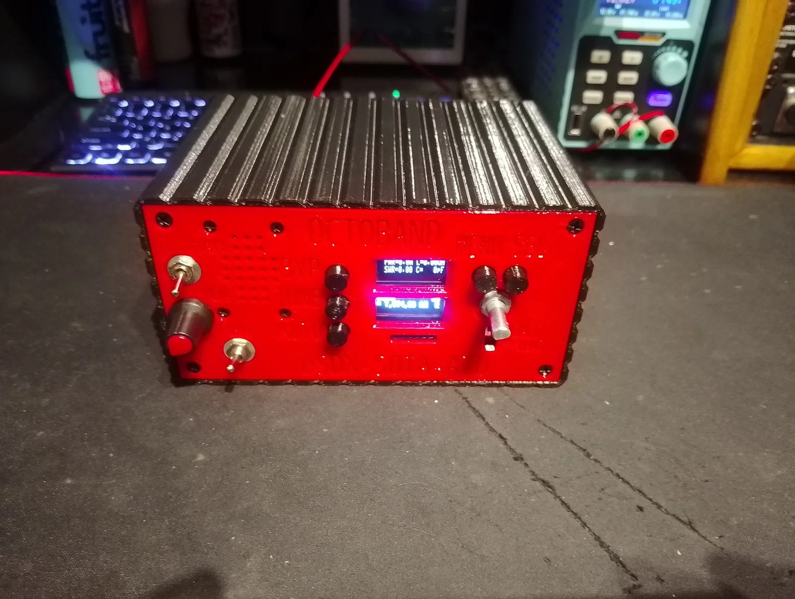 Mình đã bổ sung thêm các vị trí gắn loa ở mặt trước, lắp quạt tản nhiệt trong thân máy để làm mát khi hoạt động trong những ngày hè dài khi mang đài đi dã ngoại hoặc săn DX. Ngoài ra, mình cũng khoét lỗ núm xoay âm lượng cho module khuếch đại 3W, công tắc nguồn và quạt. Mình đã bỏ cổng DC jack gốc trên PCB và thay bằng đầu nối DC 2.1mm riêng để quản lý việc cấp nguồn cho toàn bộ hệ thống. Ở mặt sau máy còn có sẵn một lỗ để lắp cổng USB-C panel mount nếu các bạn muốn tích hợp thêm mạch sạc và pin.